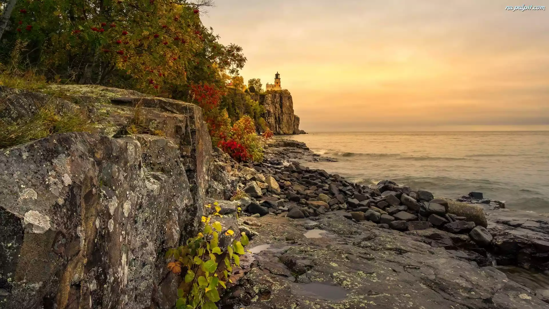 Stany Zjednoczone, Lake Superior, Jezioro, Latarnia, Split Rock Lighthouse, Skały, Minnesota Na Pulpit |