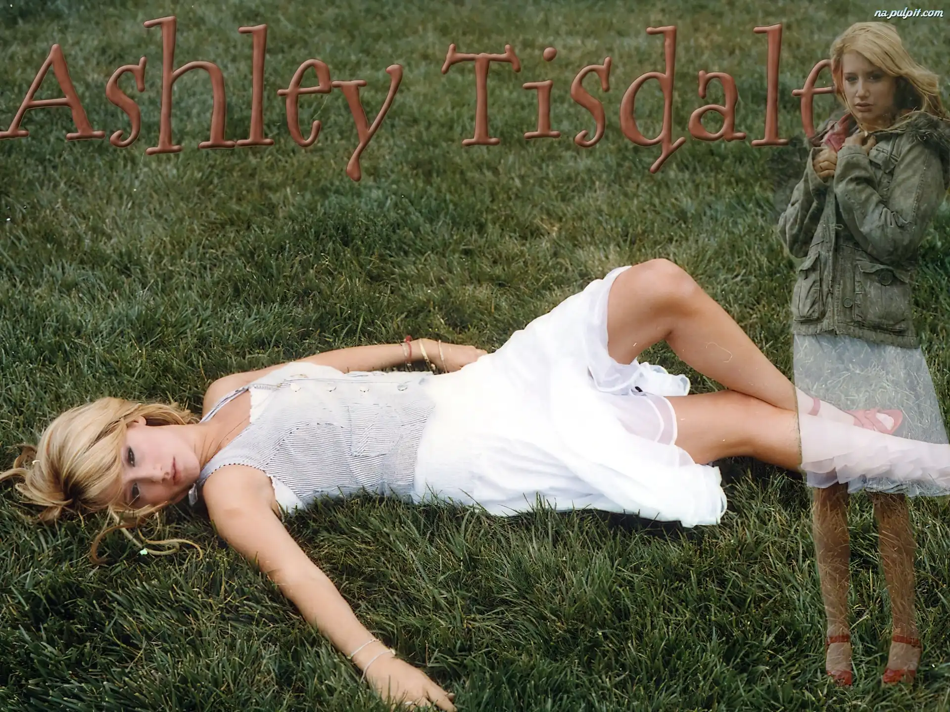 Spódnica, Trawa, Ashley Tisdale, Biała Na Pulpit