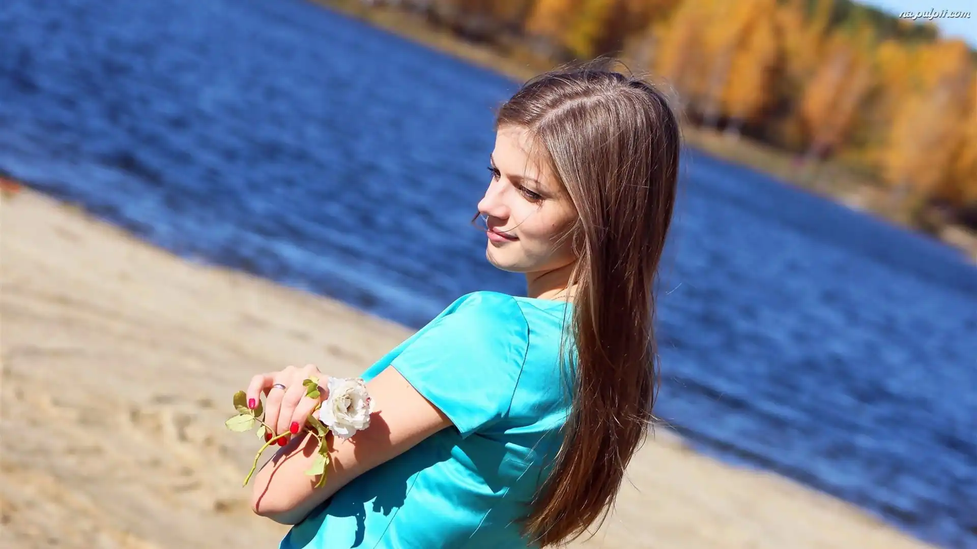 Spojrzenie, Rzeka, Dziewczyna, Różyczka