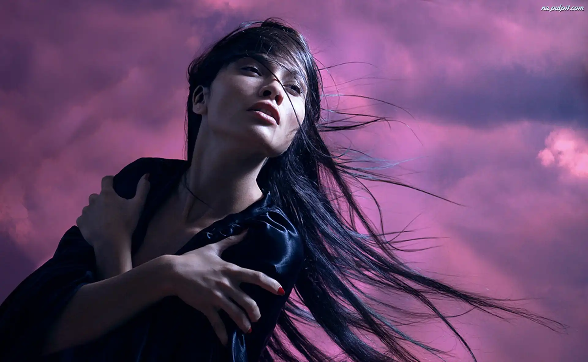 Spojrzenie, Rozwiane, Brunetka, Kobieta, Włosy Na Pulpit