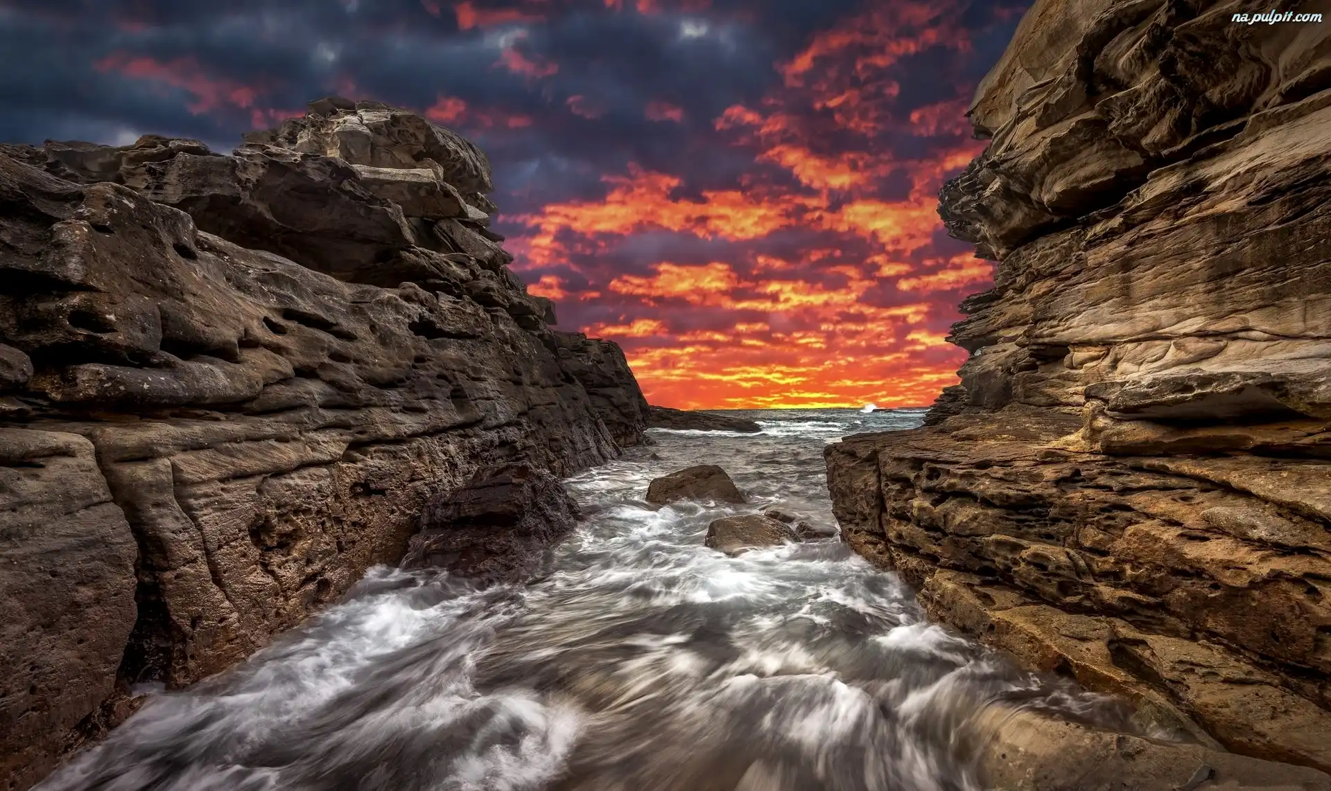 Sydney, Skały, Zachód słońca, Little Bay, Australia, Ocean Spokojny Na Pulpit