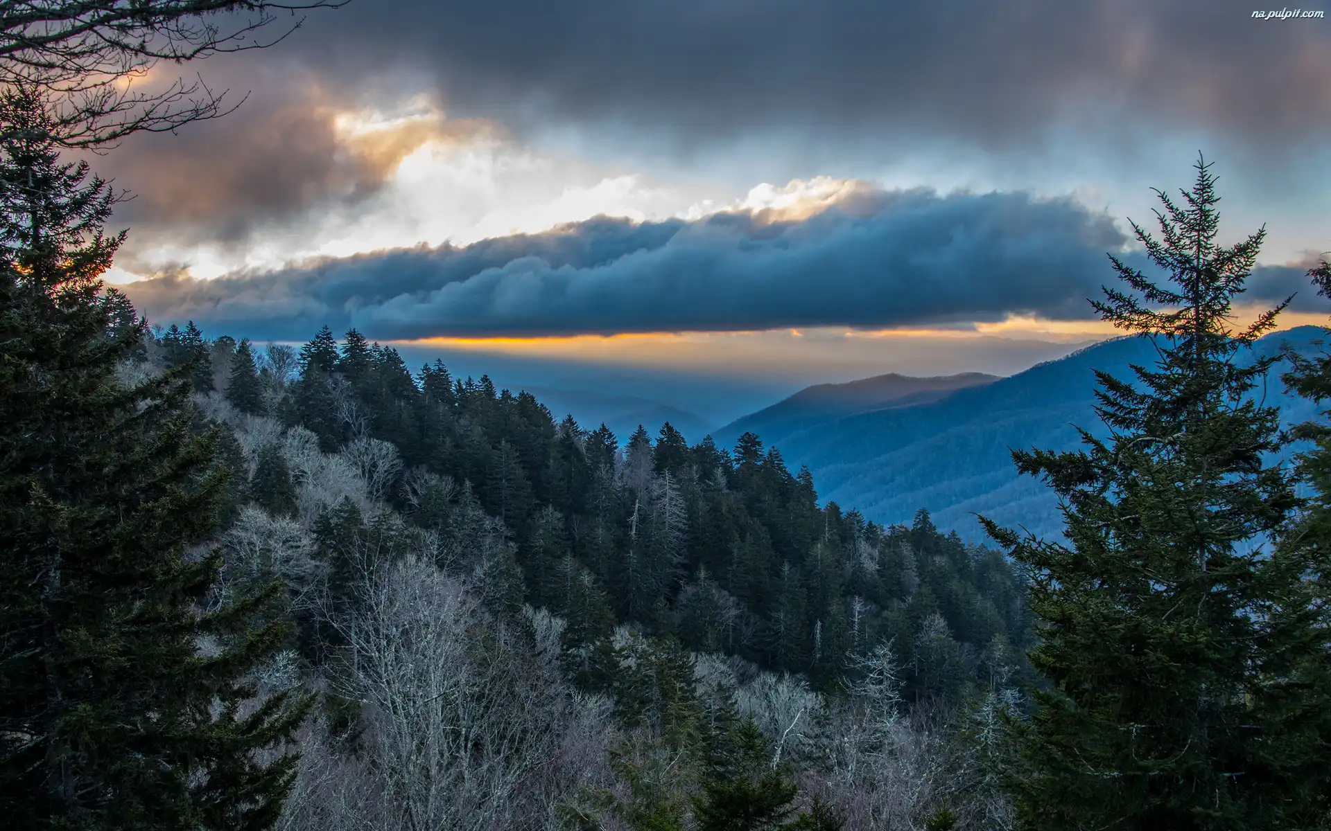 Stan Karolina Północna, Chmury, Las, Park Narodowy Great Smoky Mountains, Stany Zjednoczone, Góry Na Pulpit |