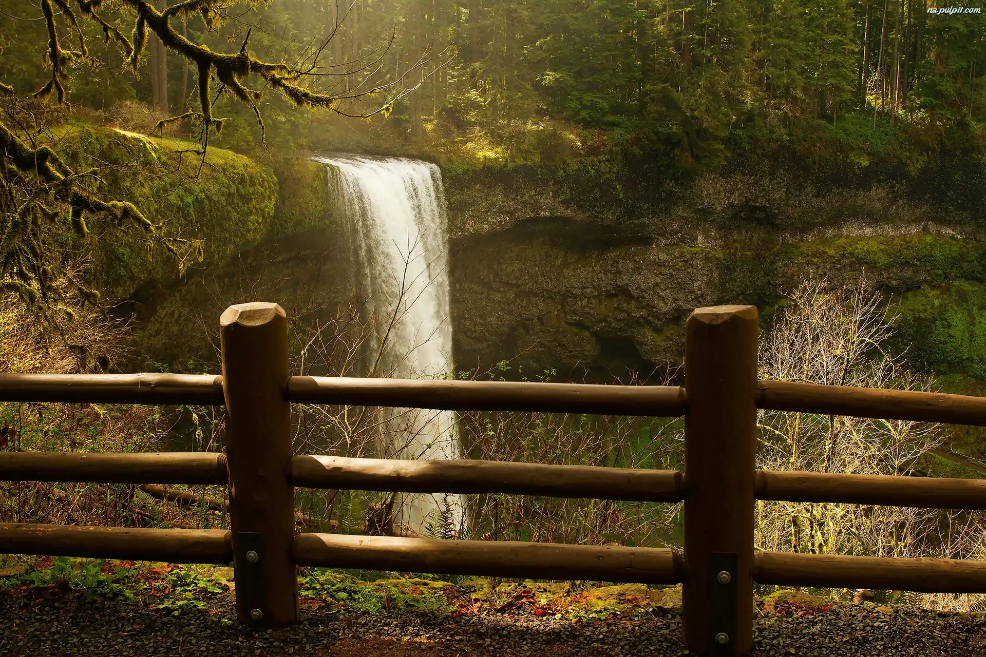 Stan Oregon, Las, Płot, Park Stanowy Silver Falls, Stany Zjednoczone, Wodospad South Falls Na Pulpit |
