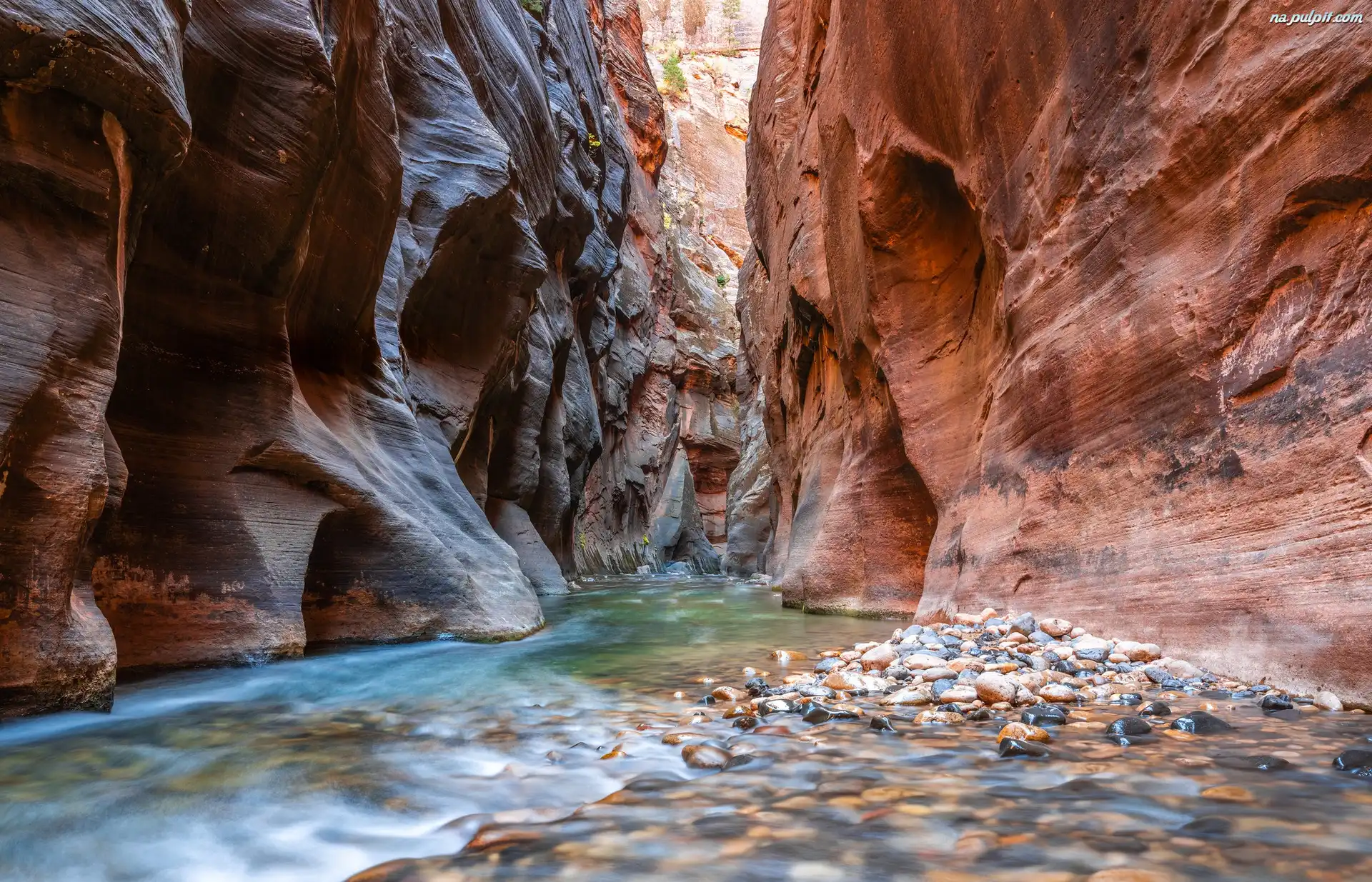 Stany Zjednoczone, Zion Narrows, Stan Utah, Virgin River, Rzeka, Kanion, Park Narodowy Zion Na Pulpit |