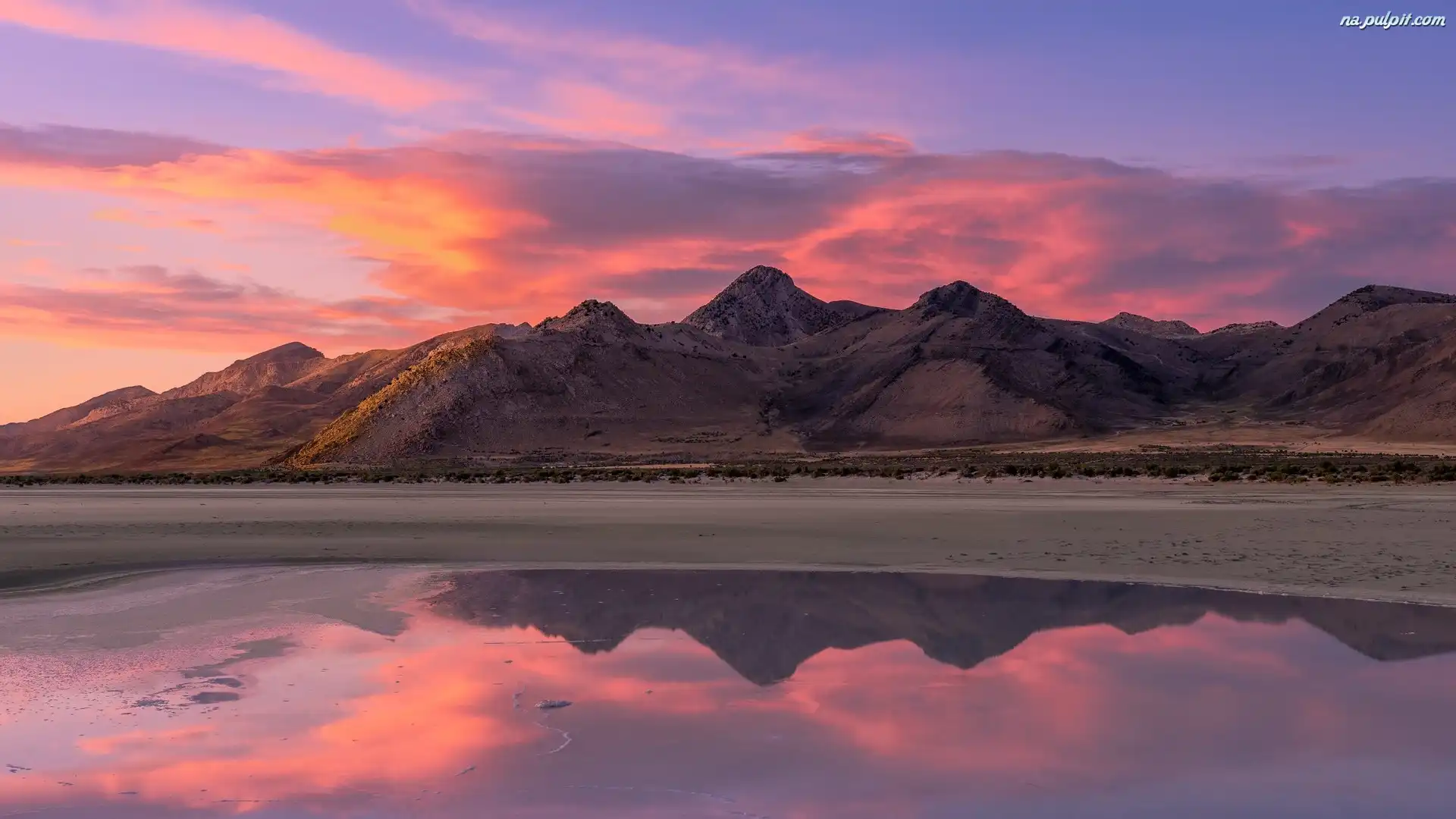 Stany Zjednoczone, Wielkie Jezioro Słone, Stan Utah, Góry Wasatch, Great Salt Lake, Jezioro, Zachód słońca Na Pulpit |