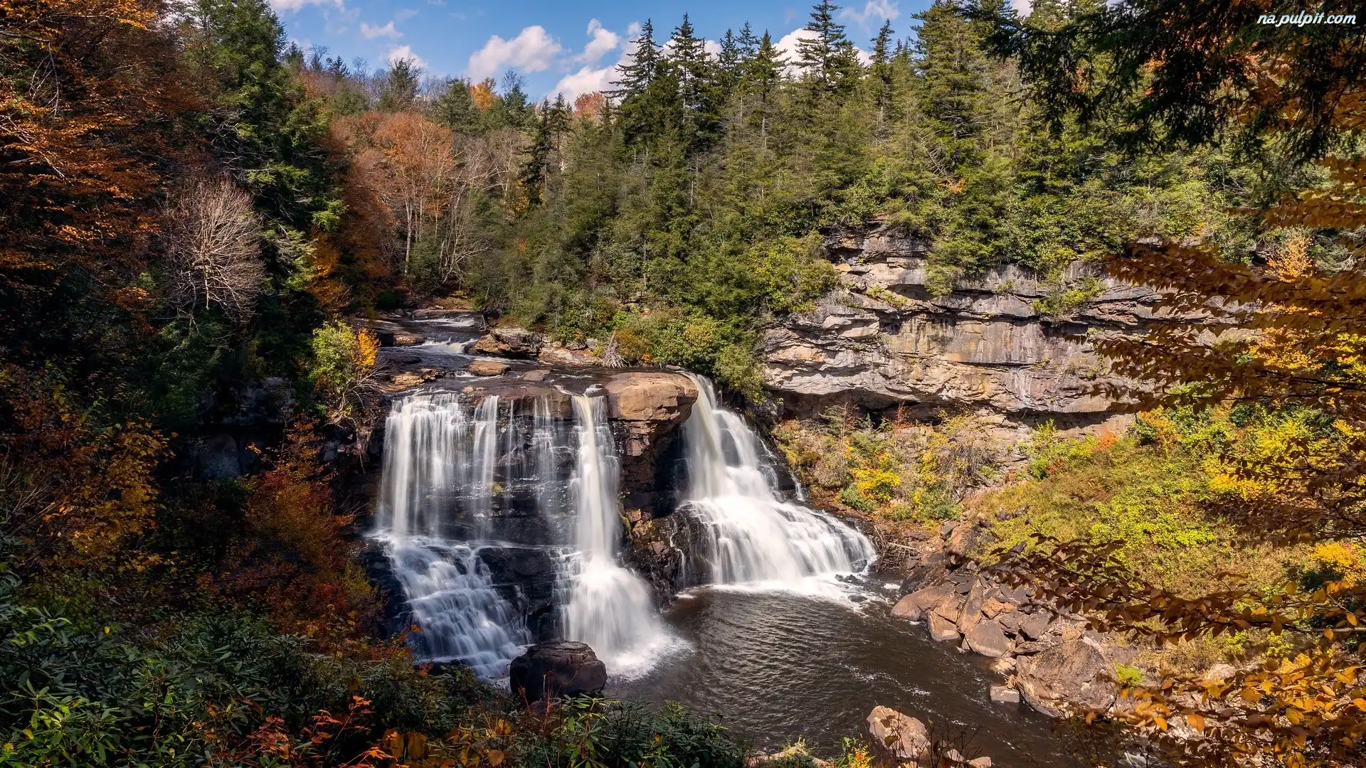 Rośliny, Blackwater Falls, Rzeka Blackwater, Skały, Stany Zjednoczone, Wirginia, Wodospad, Drzewa Na Pulpit |