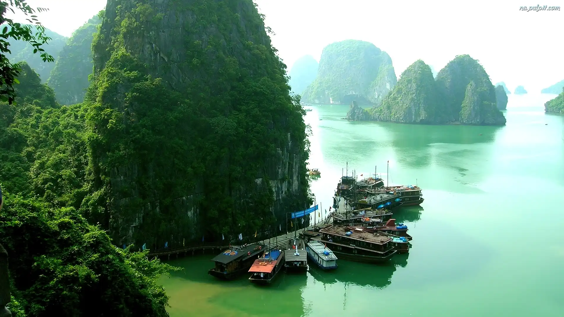 Stateczki, Tajlandia, Halong, Zatoka, Skały Na Pulpit