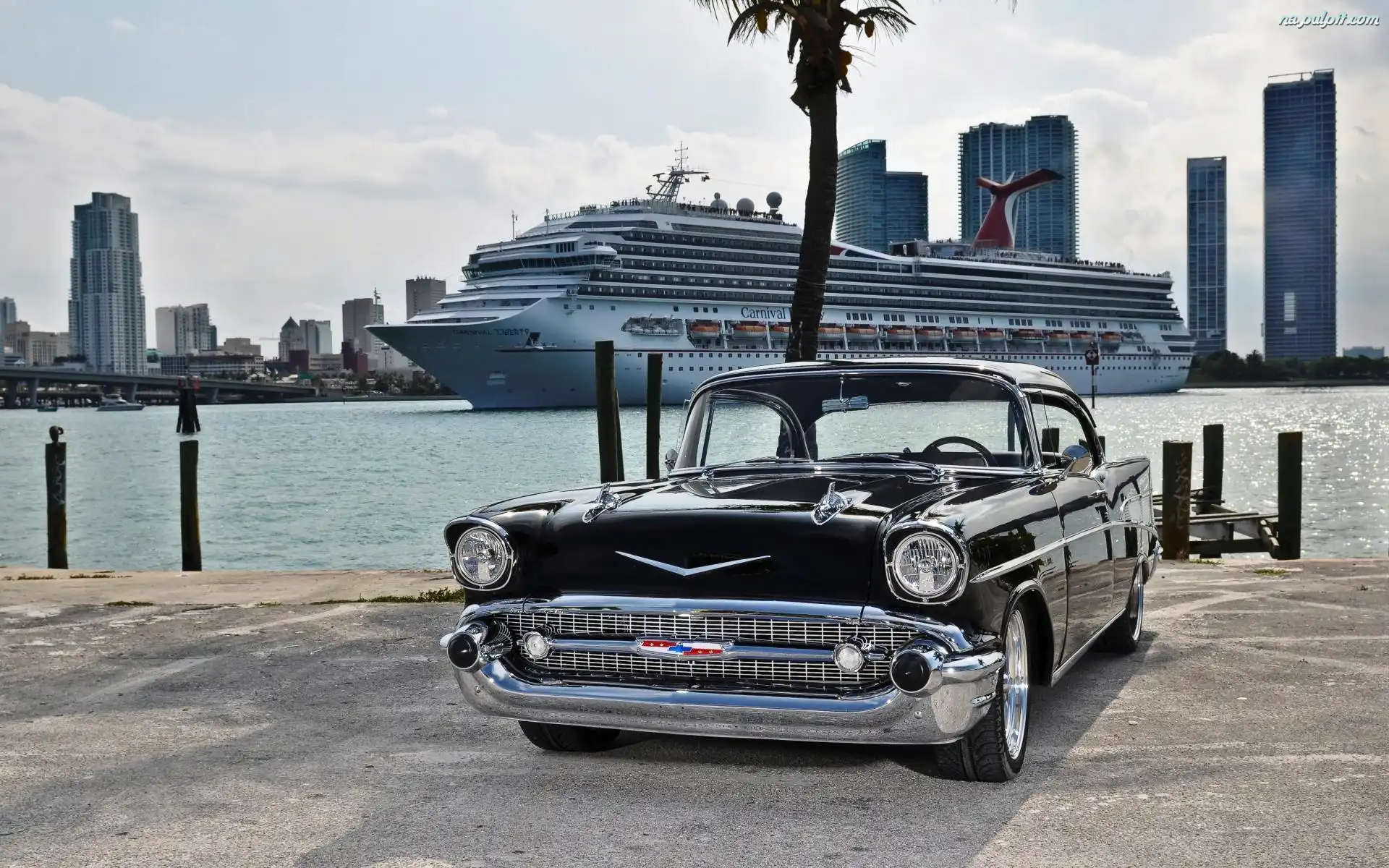 Chevrolet, Statek, Drapacze Chmur, Bel Air, Zabytkowy, 1954 Na Pulpit