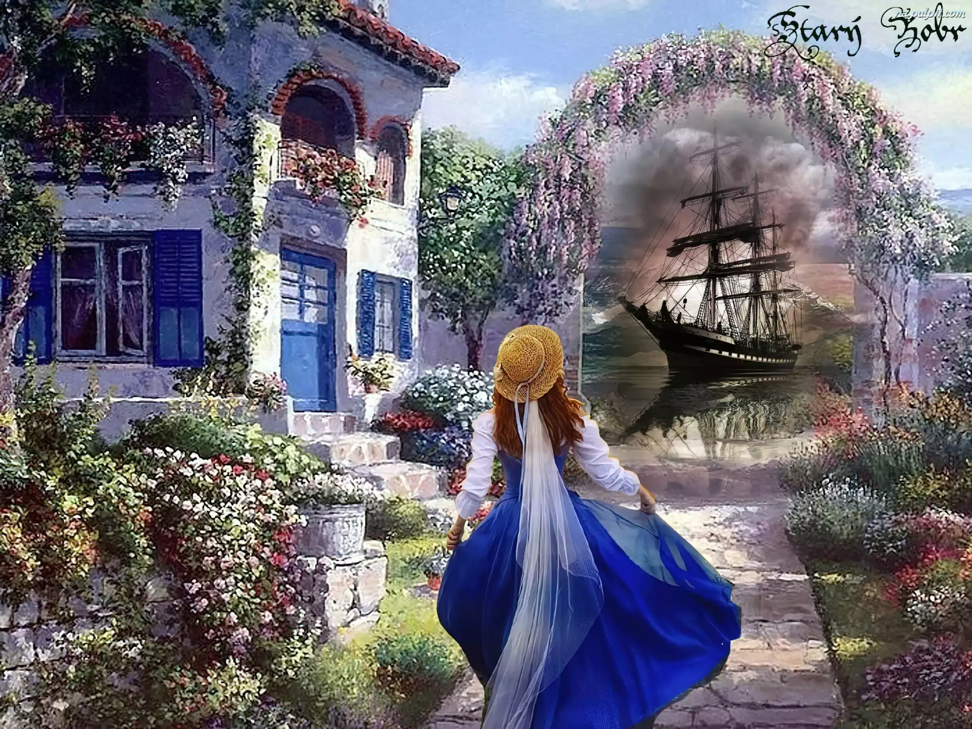 Statek, Ogród, Dom, Dziewczyna Na Pulpit