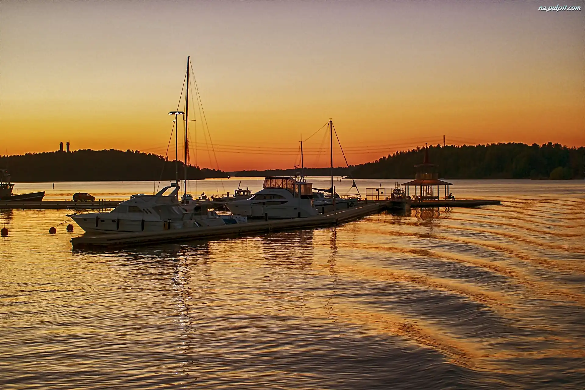 Statek, Zachód, Jezioro, Słońca Na Pulpit