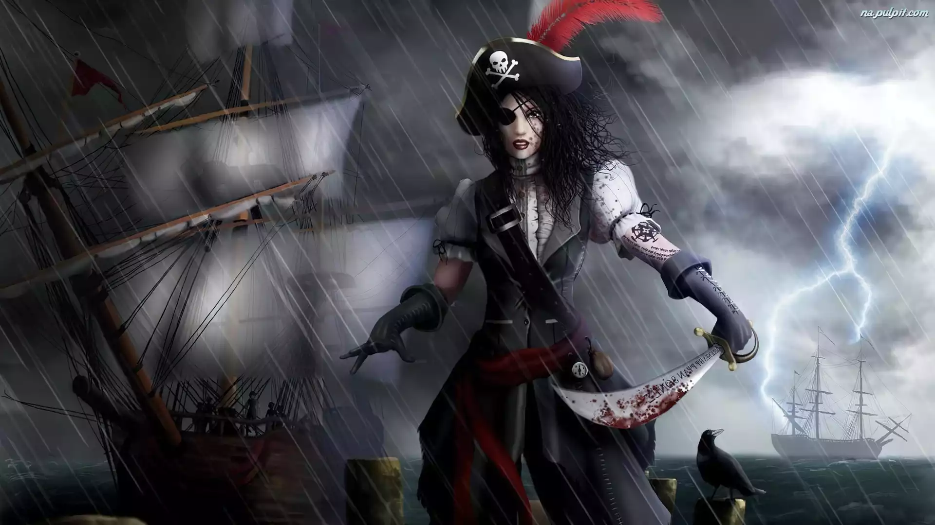 Statek, Pirat, Kobieta, Miecz Na Pulpit