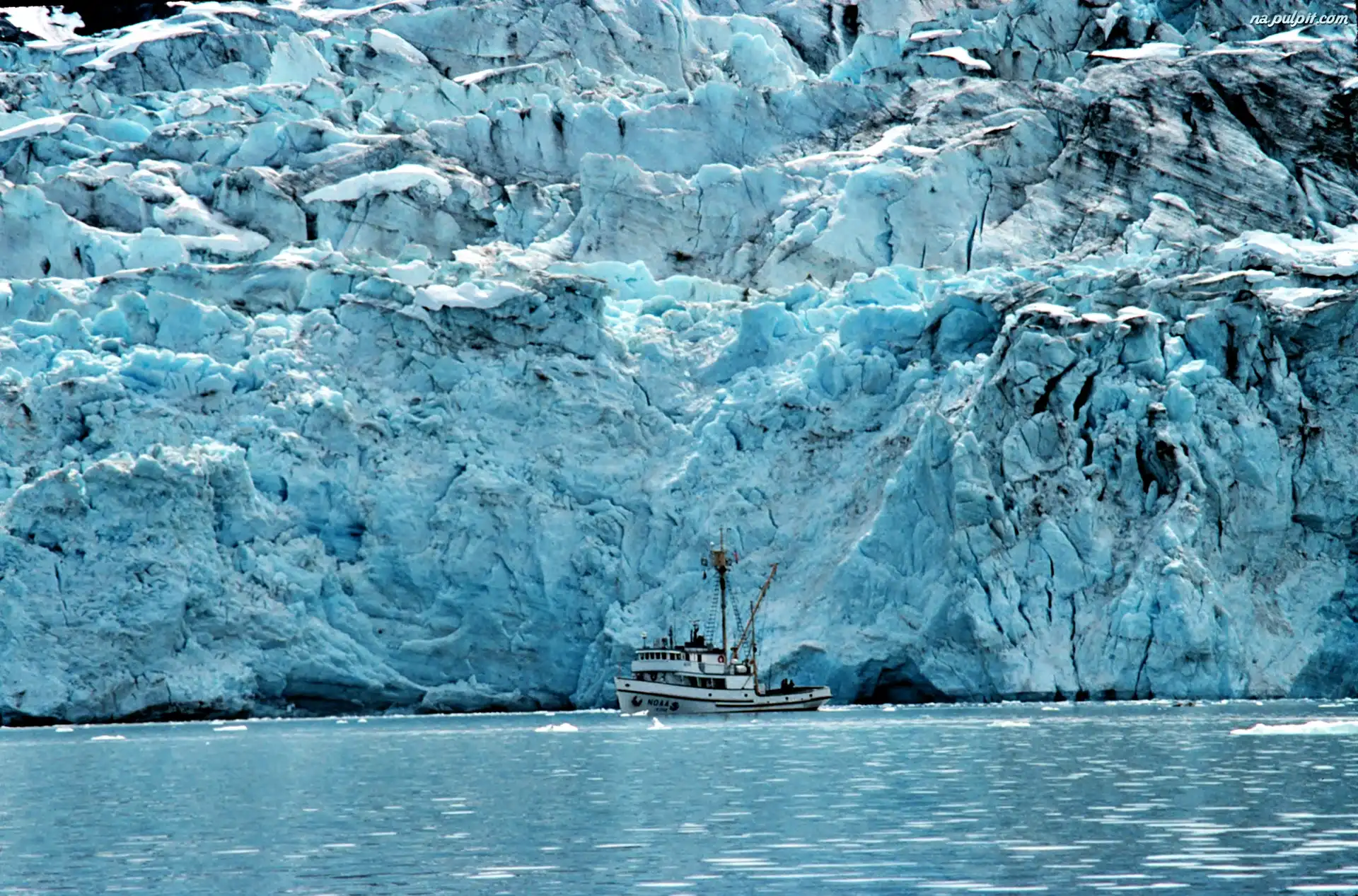 Statek, Góra, Morze, Lodowa Na Pulpit