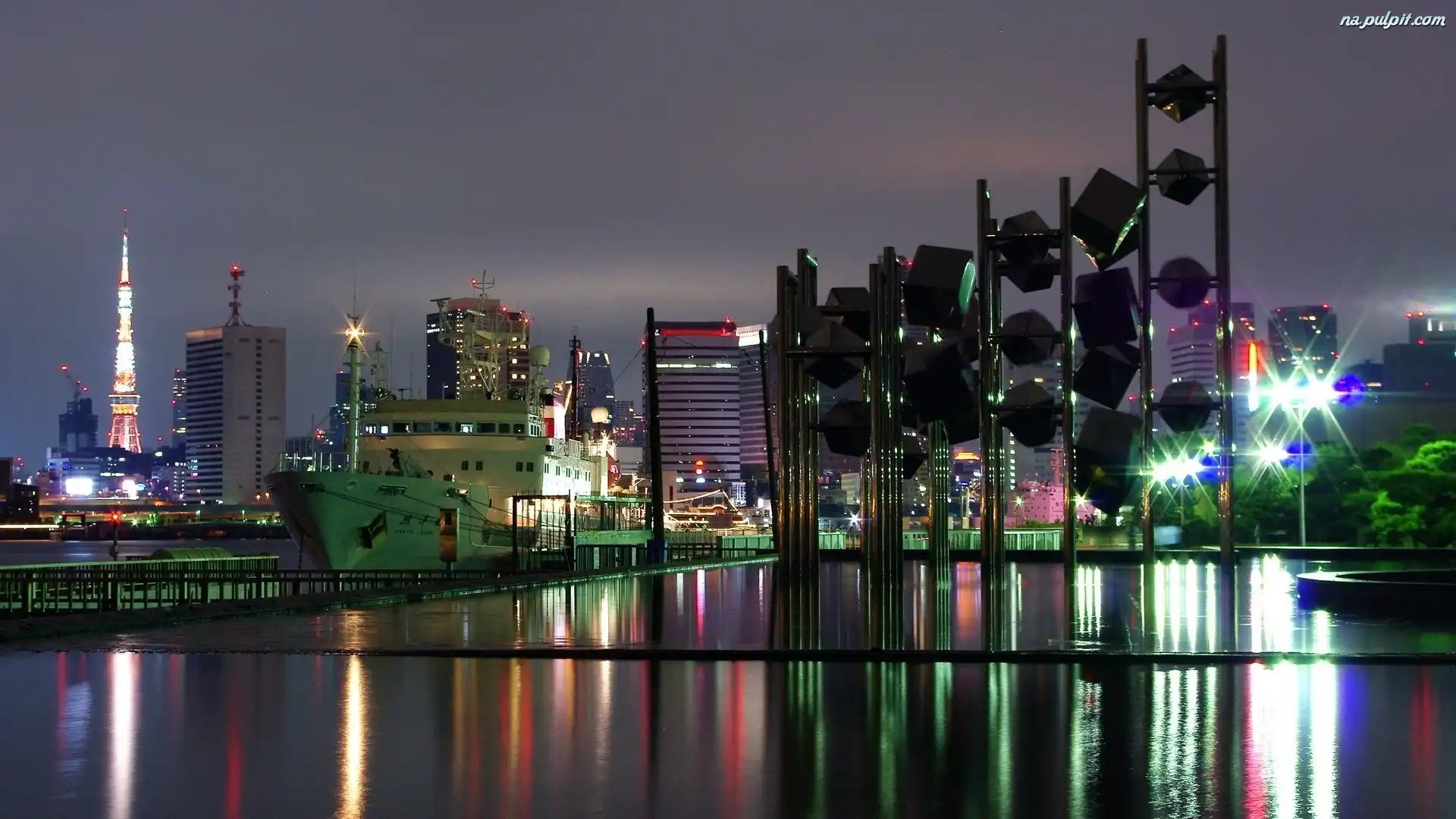 Statek, Miasto, Tokio, Nocą Na Pulpit