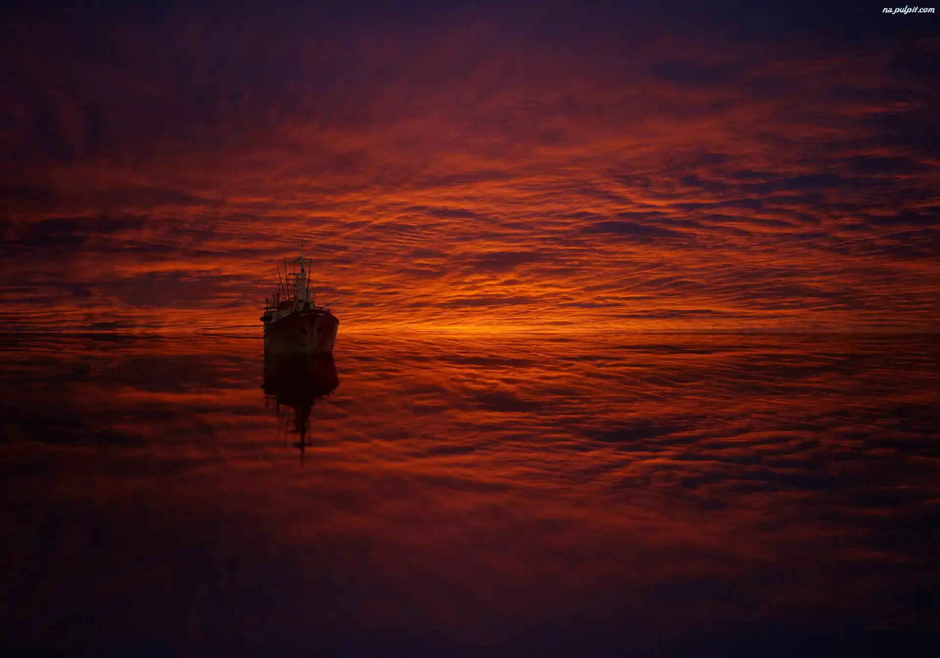 Statek, Słońca, Zachód, Chmury