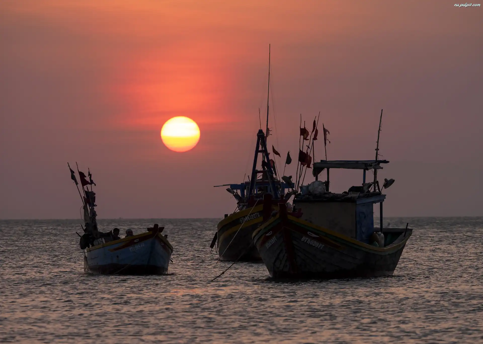 Statki, Zachód, Morze , Słońca Na Pulpit