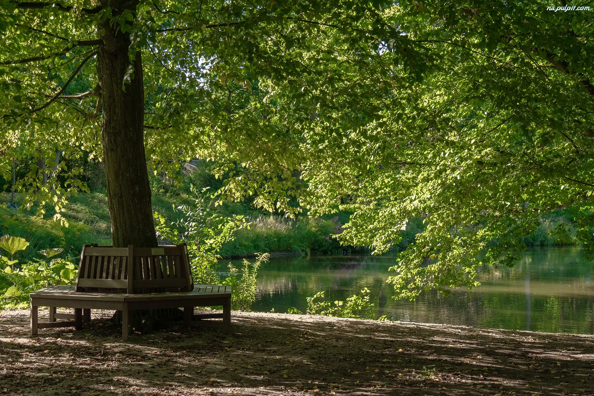 Staw, Drzewa, Ławki, Park Na Pulpit
