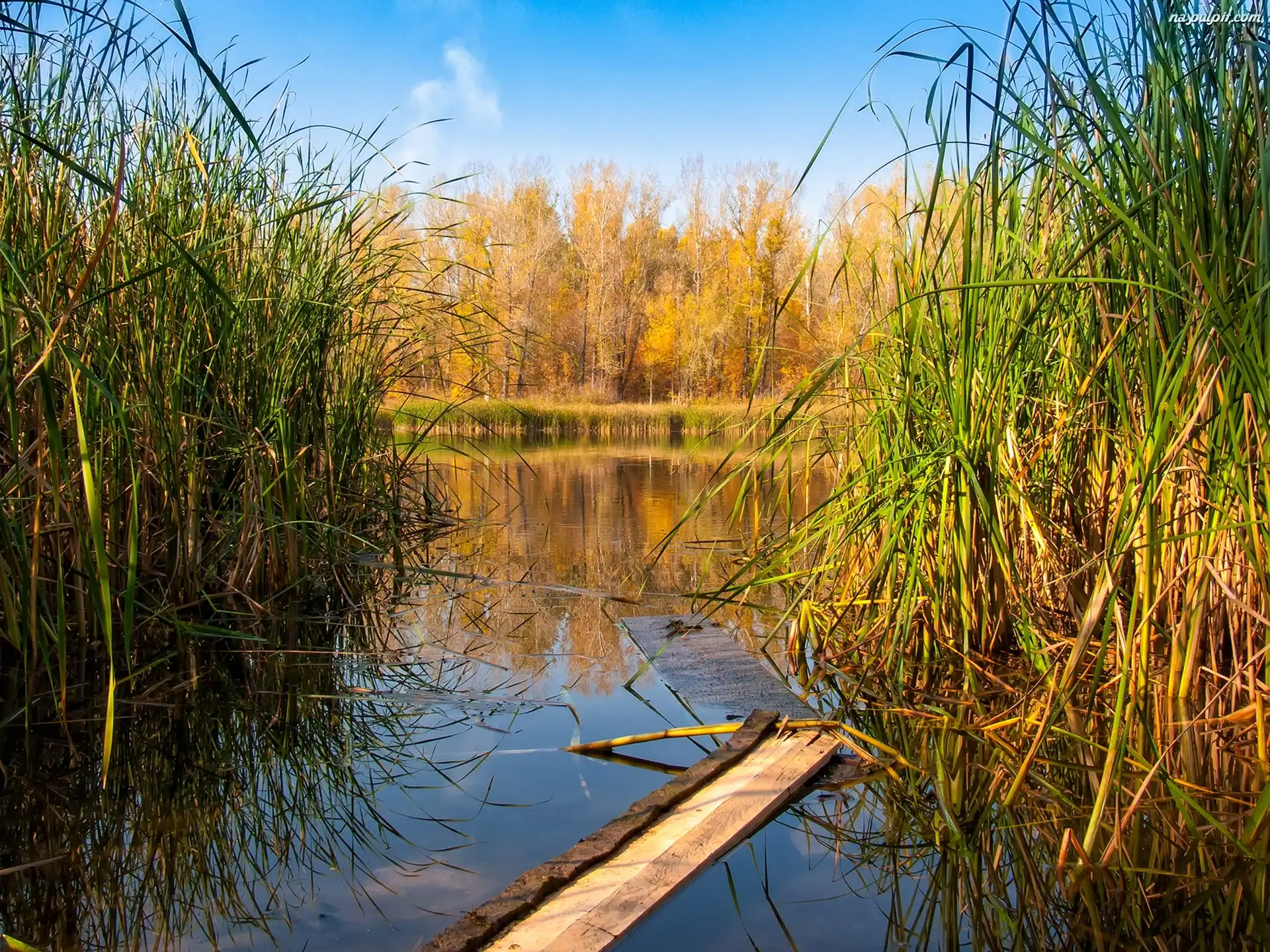 Staw, Drzewa, Jesień, Trzcina Na Pulpit