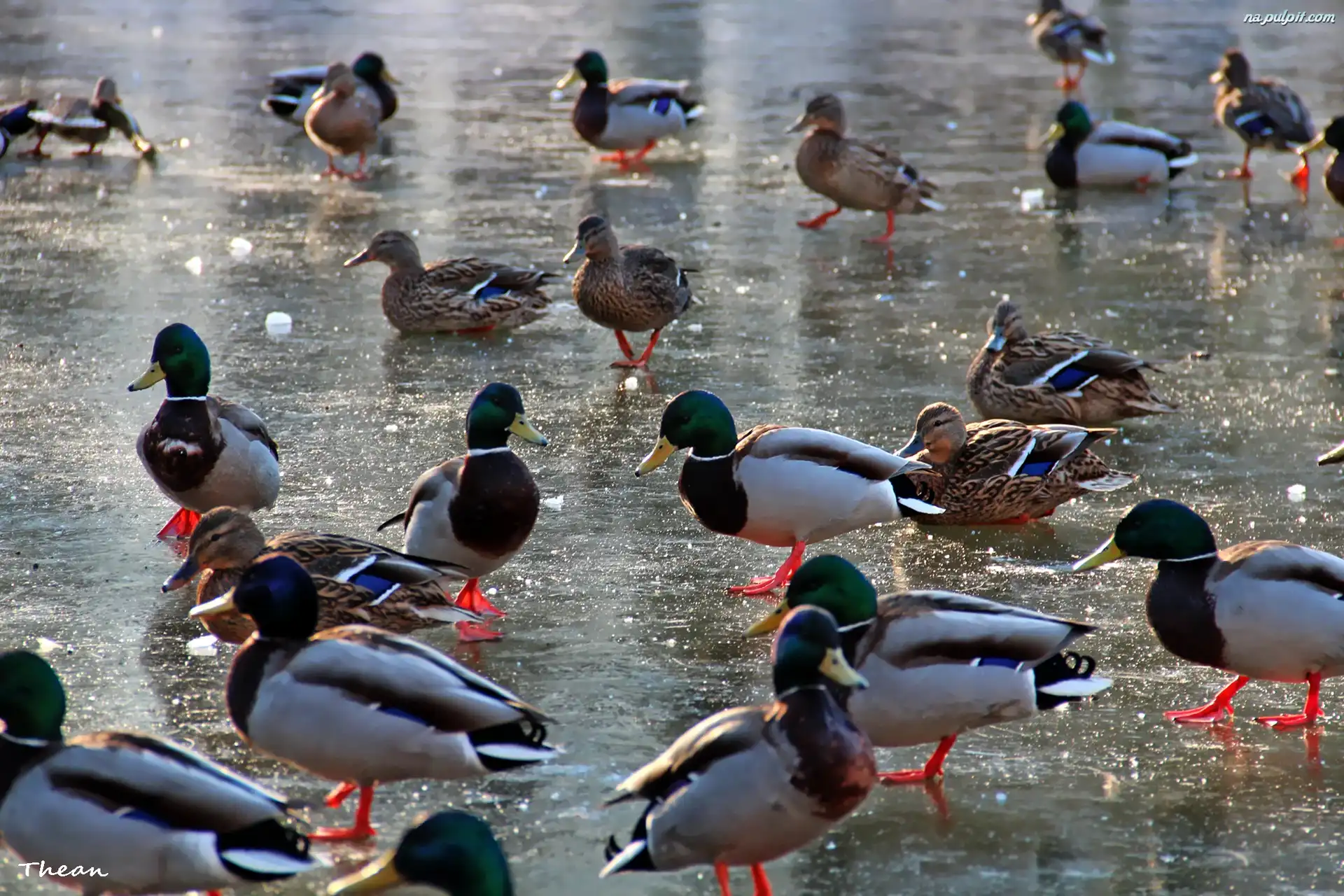 Staw, Krzyżówki, Kaczki, Zamarznięty Na Pulpit