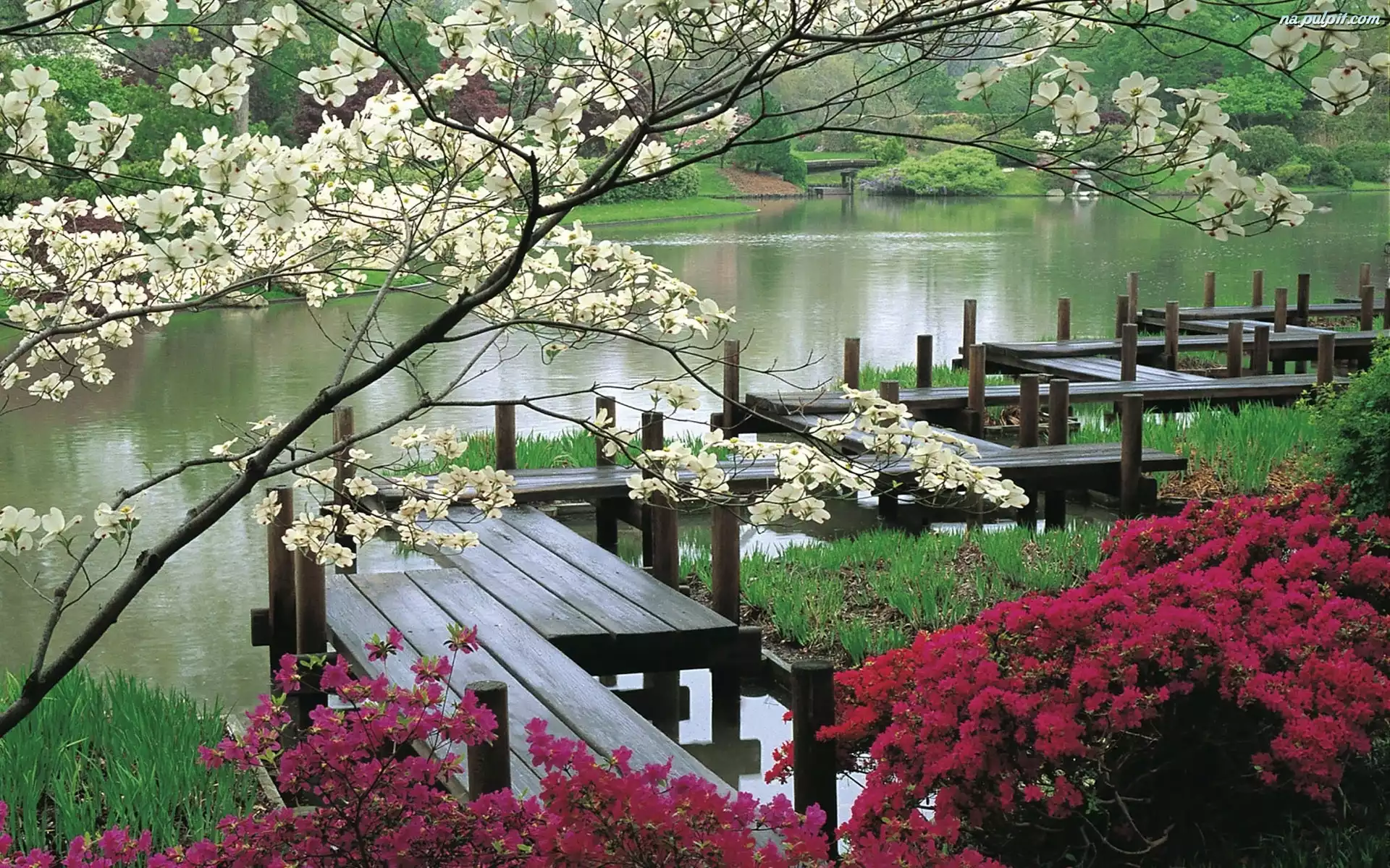 Ławeczki, Kwitnące, Staw, Krzewy Na Pulpit