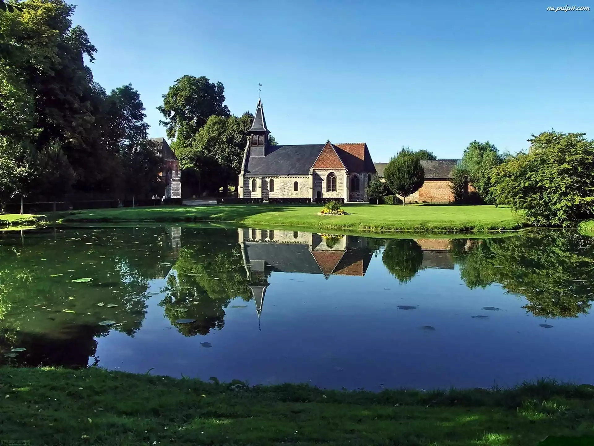 Staw, Przebijające, Światło, Kościół, Park, Domy Na Pulpit