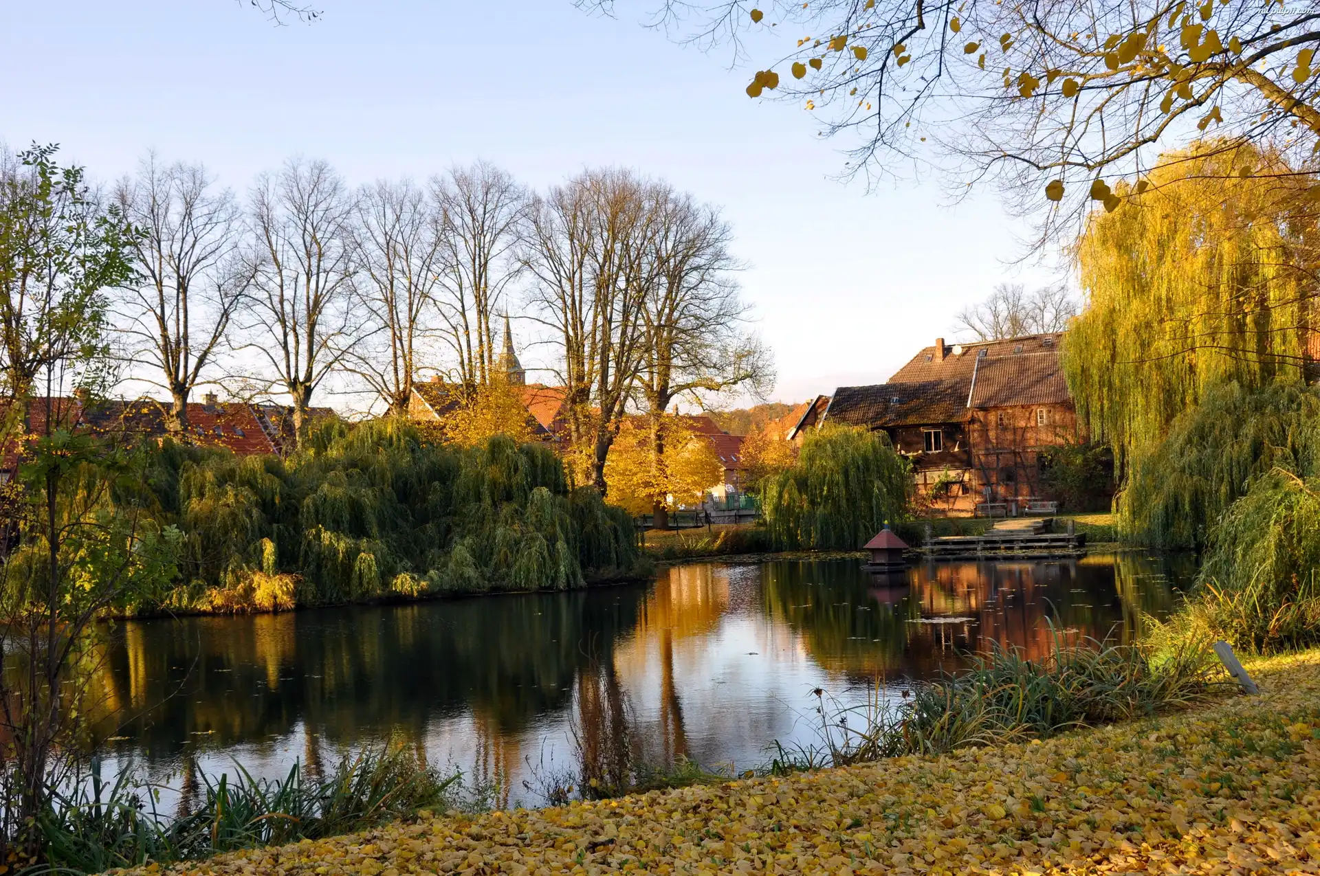Zabudowania, Staw, Drzewa Na Pulpit