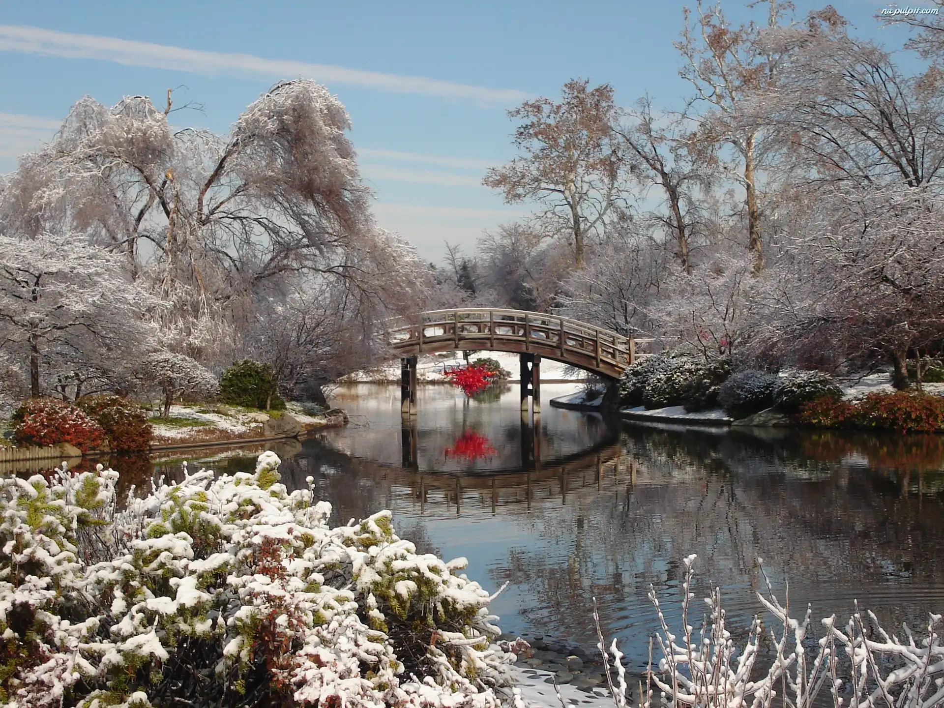 Staw, Park, Mostek, Zima, Śnieg Na Pulpit