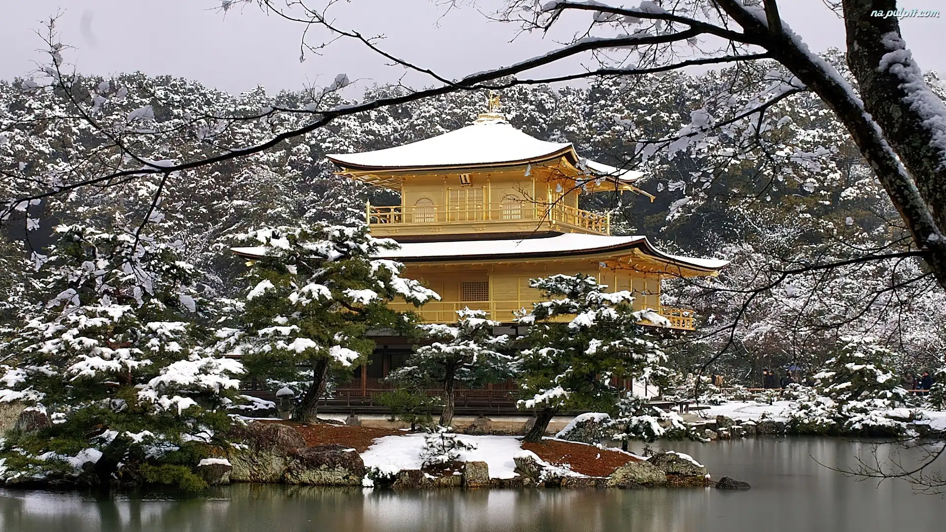 Staw, Buddyjska, Park, Zima, Świątynia Na Pulpit