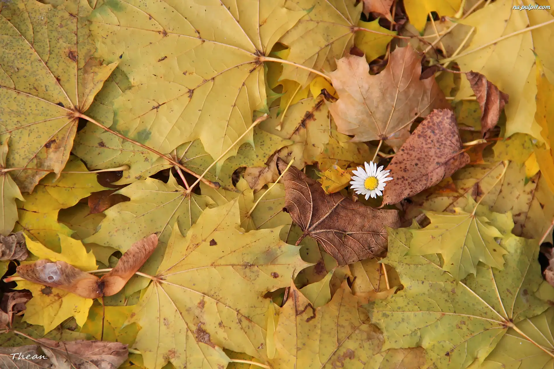 Stokrotka, Suche, Jesienne, Liście Na Pulpit