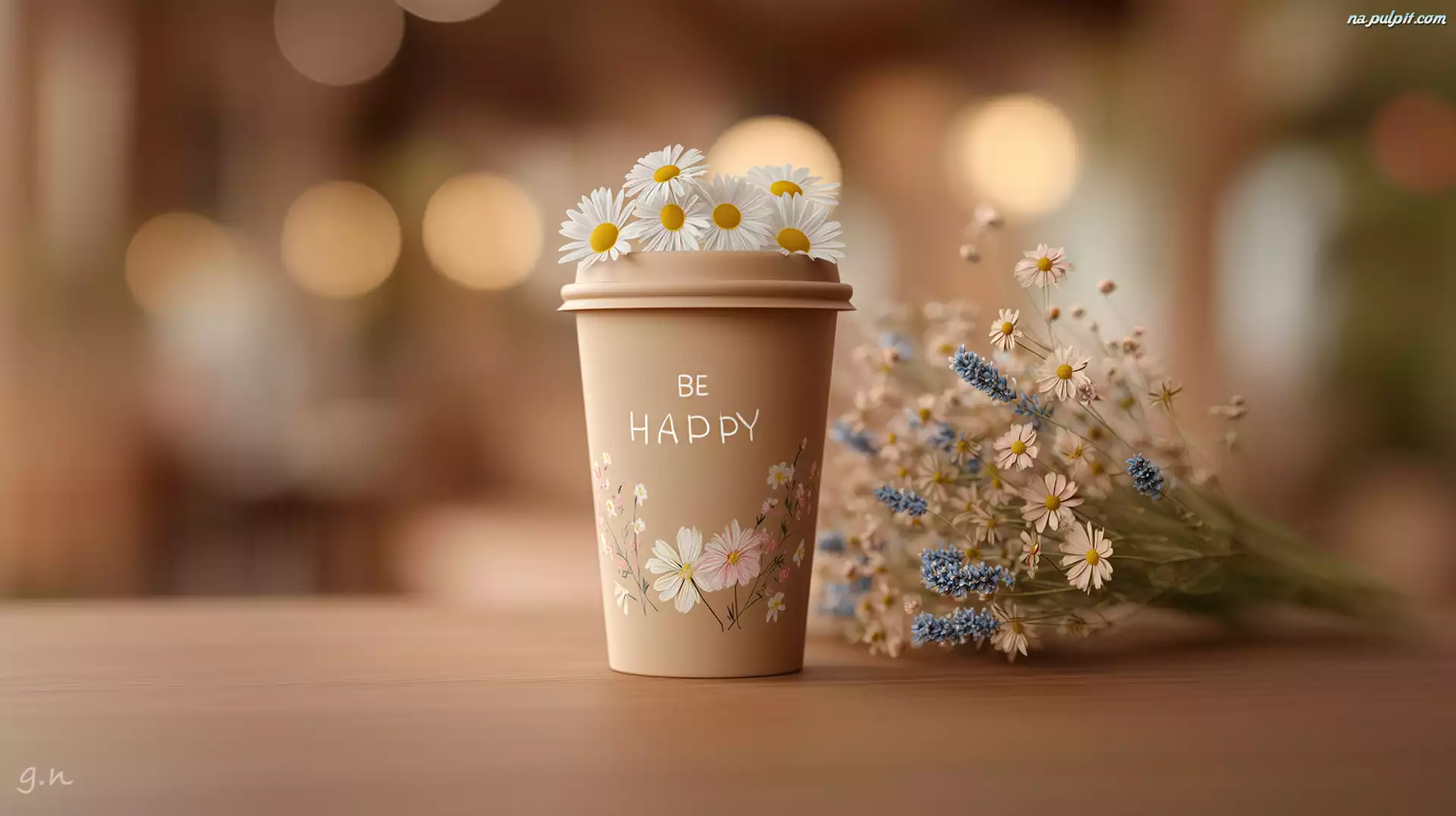 Bukiet, Kubek, Kwiaty, Stokrotki, Kawa, Grafika AI Na Pulpit