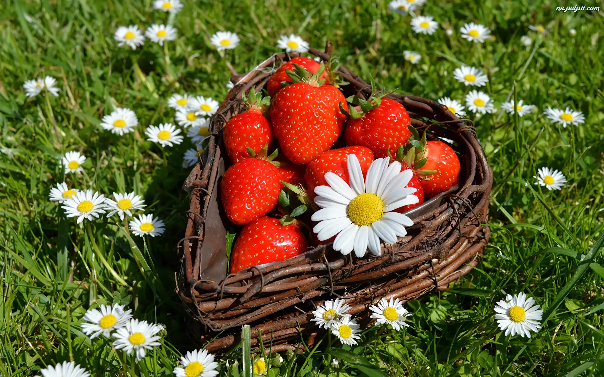 Stokrotki, Koszyk, Truskawki, Margerytka