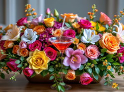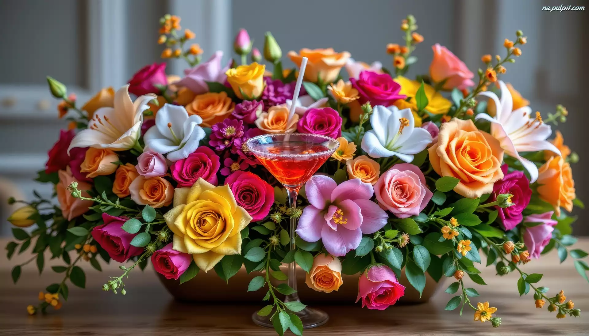 Bukiet, Kwiaty, Drink, Stół Na Pulpit