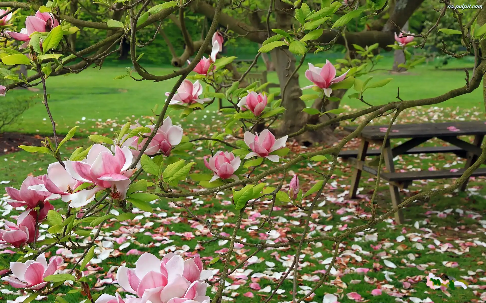 Stolik, Różowa, Ogród, Magnolia Na Pulpit