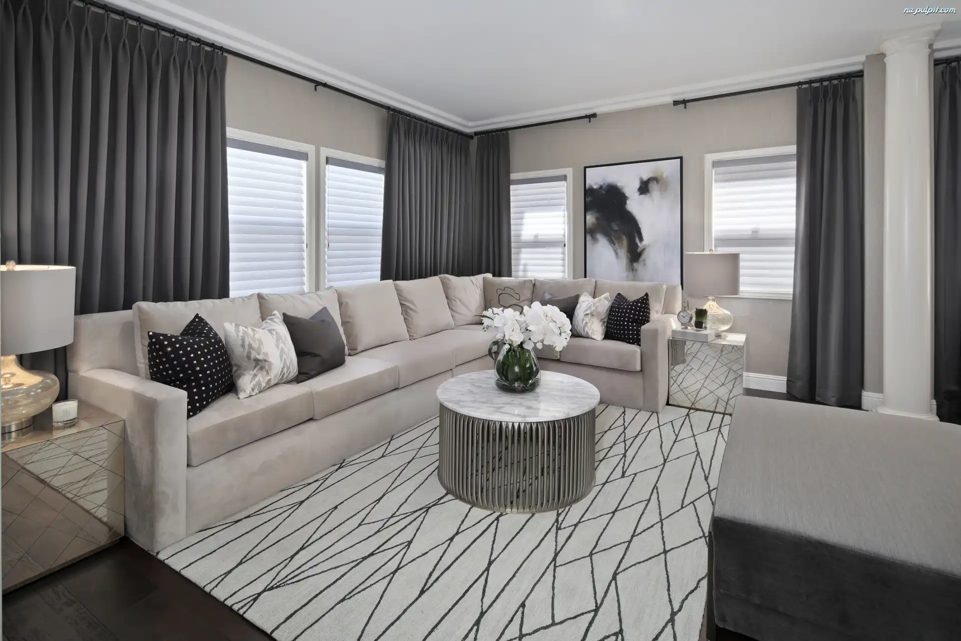 Stolik, Kanapa, Salon, Okrągły