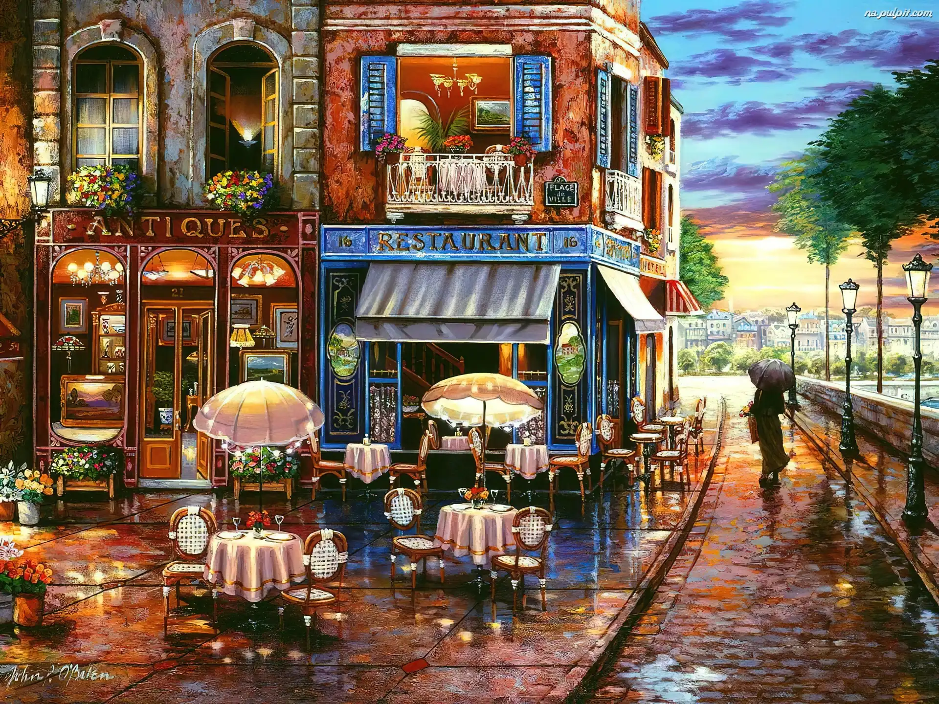 Stoliki, Domy, Ulica, Kawiarnia Na Pulpit