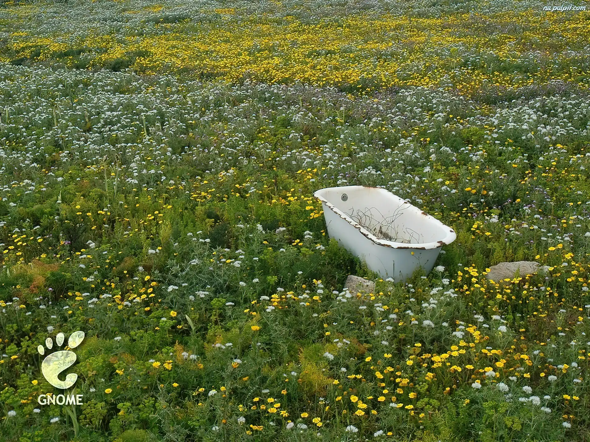 stopa, wanna, kwiaty, łąka, Gnome Na Pulpit
