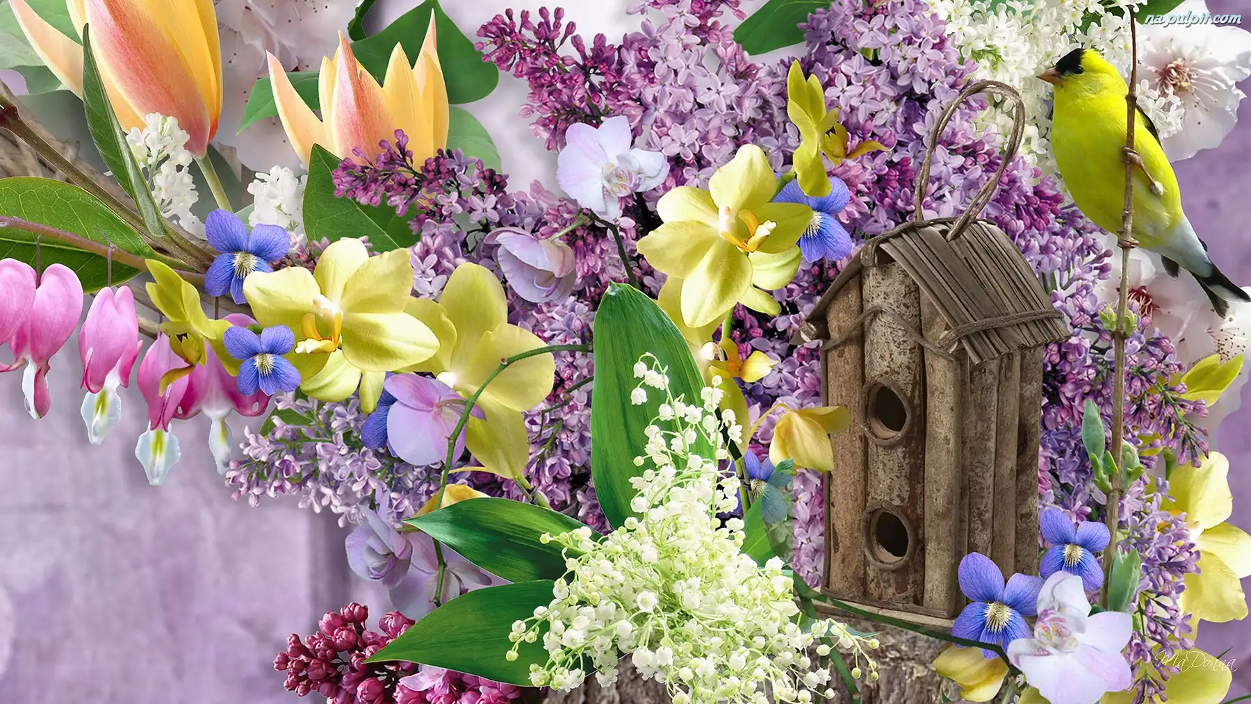 Konwalie, Czyż, Budka, Karmnik, Tulipany, Bez, Kwiaty, Czyżyk, Storczyki Na Pulpit