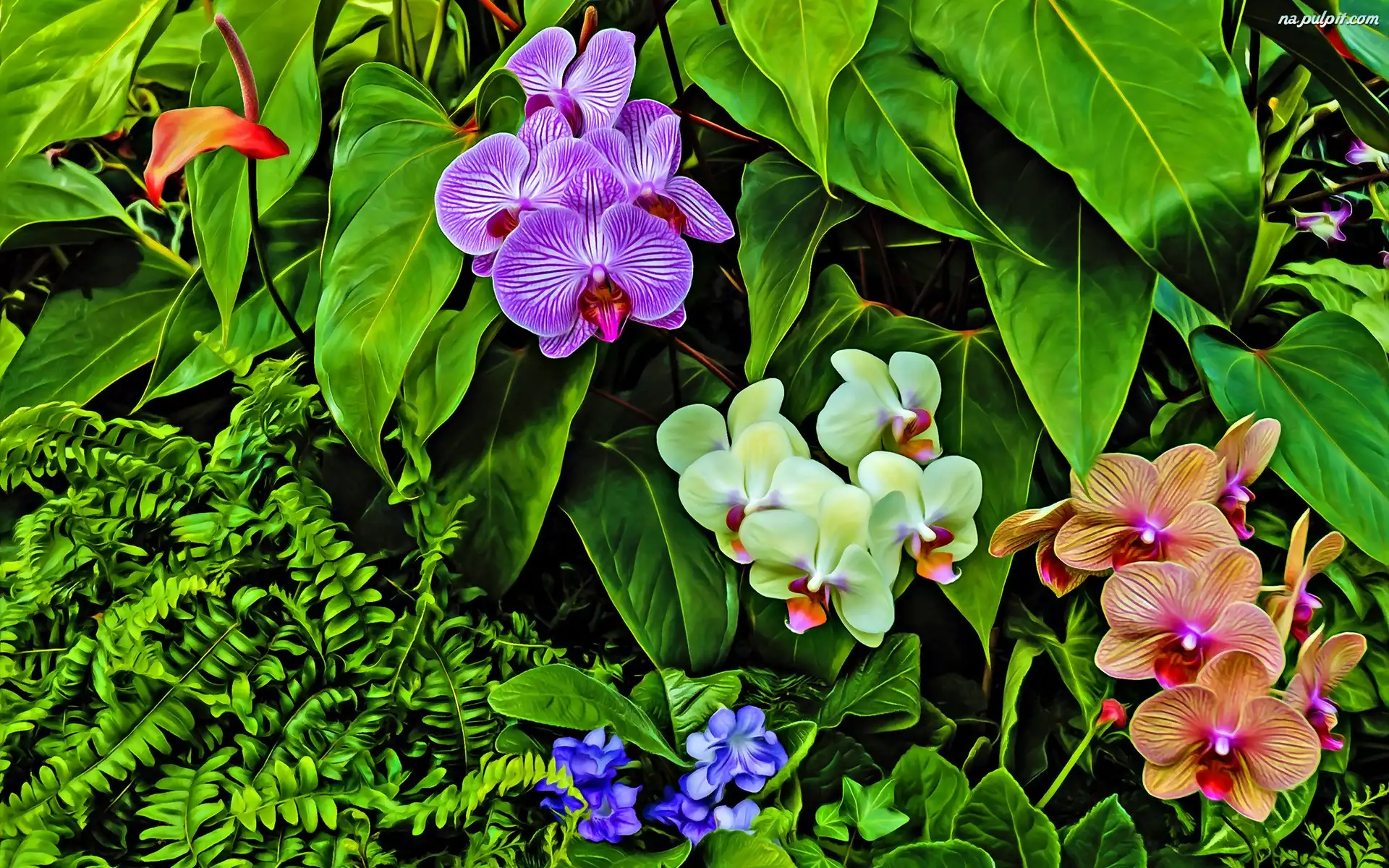 Grafika, Storczyki, Paprocie Na Pulpit