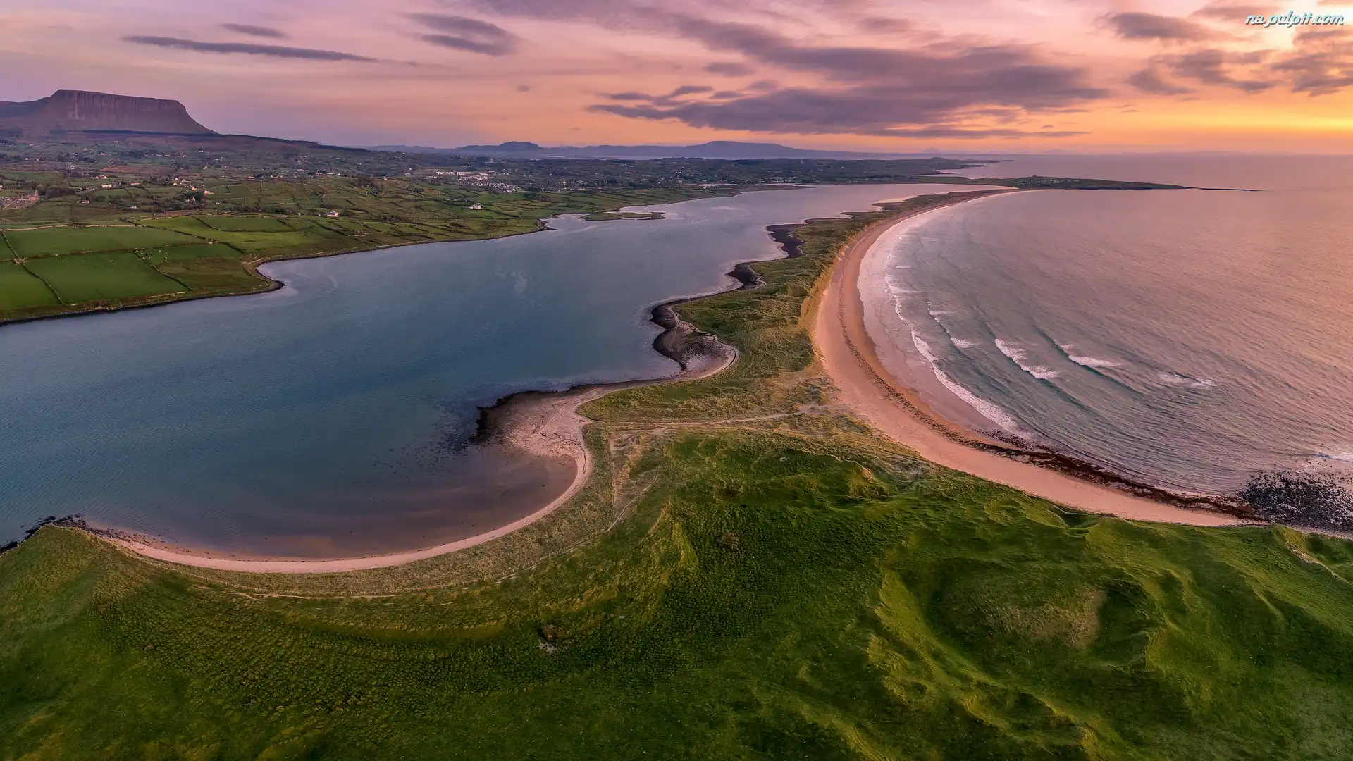 Morze, Plaża, Streedagh Beach, Hrabstwo Sligo, Irlandia, Góra, Wybrzeże, Ben Bulben
