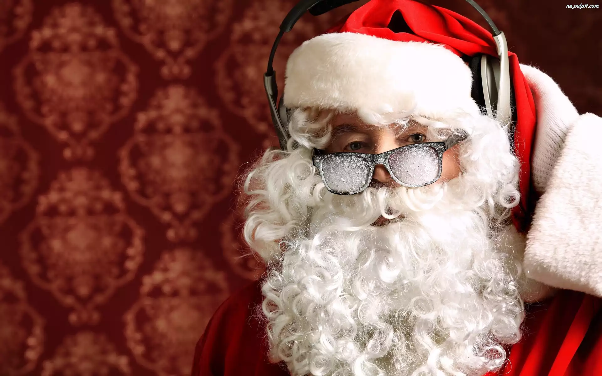 Strój, Okulary, Słuchawki, Świętego, Mężczyzna, Mikołaja