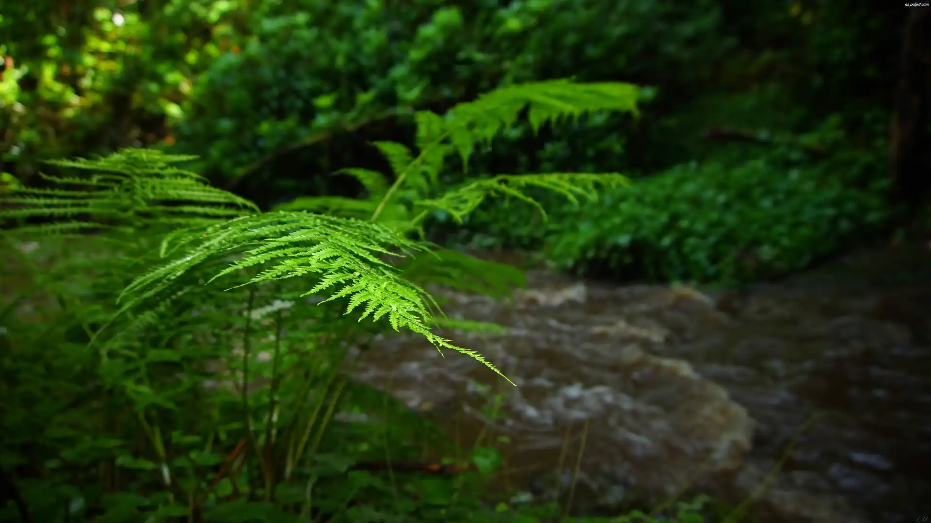 Strumyk, Paprocie, Liście, Zieleń