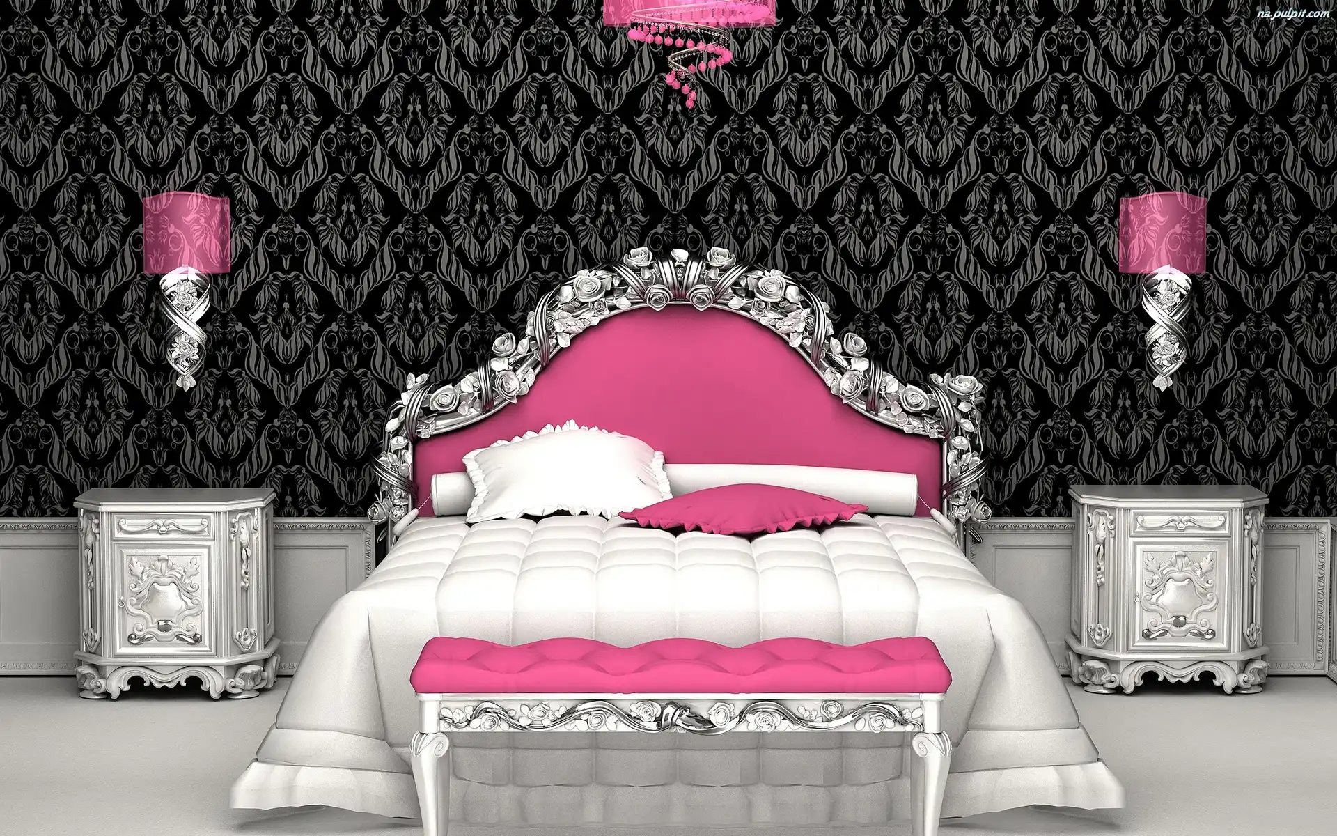 Stylistyka, Różowo, Łóżko, Sypialnia, Srebrna Na Pulpit