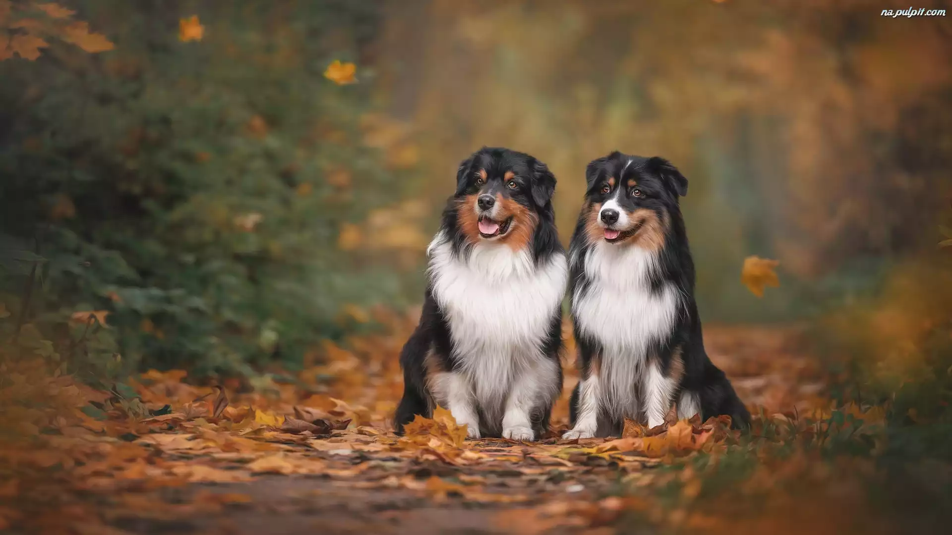 Liście, Psy, Dwa, Suche, Owczarki australijskie Na Pulpit