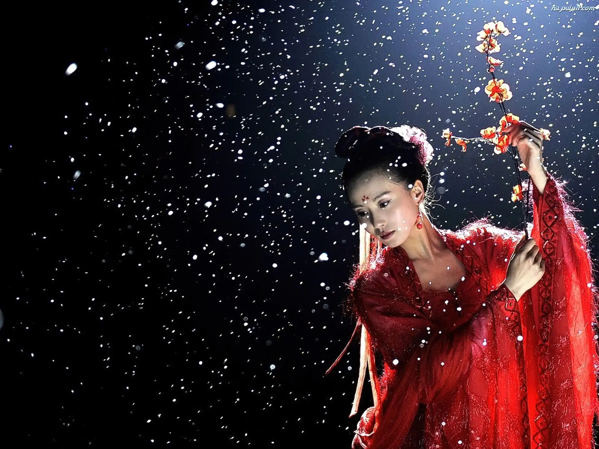 Sukienka, Kwiat, Gałązka, Brunetka, Czerwona Na Pulpit