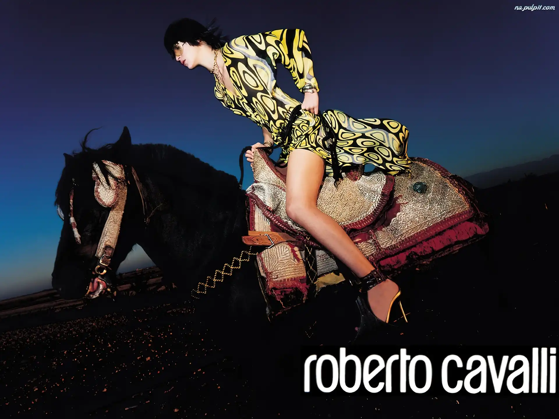 sukienka, kobieta, Roberto Cavalli, koń Na Pulpit