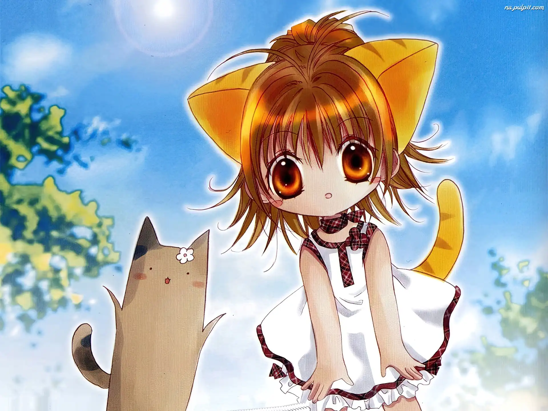 sukienka, kotek, dziewczyna, Digi Charat, ogon