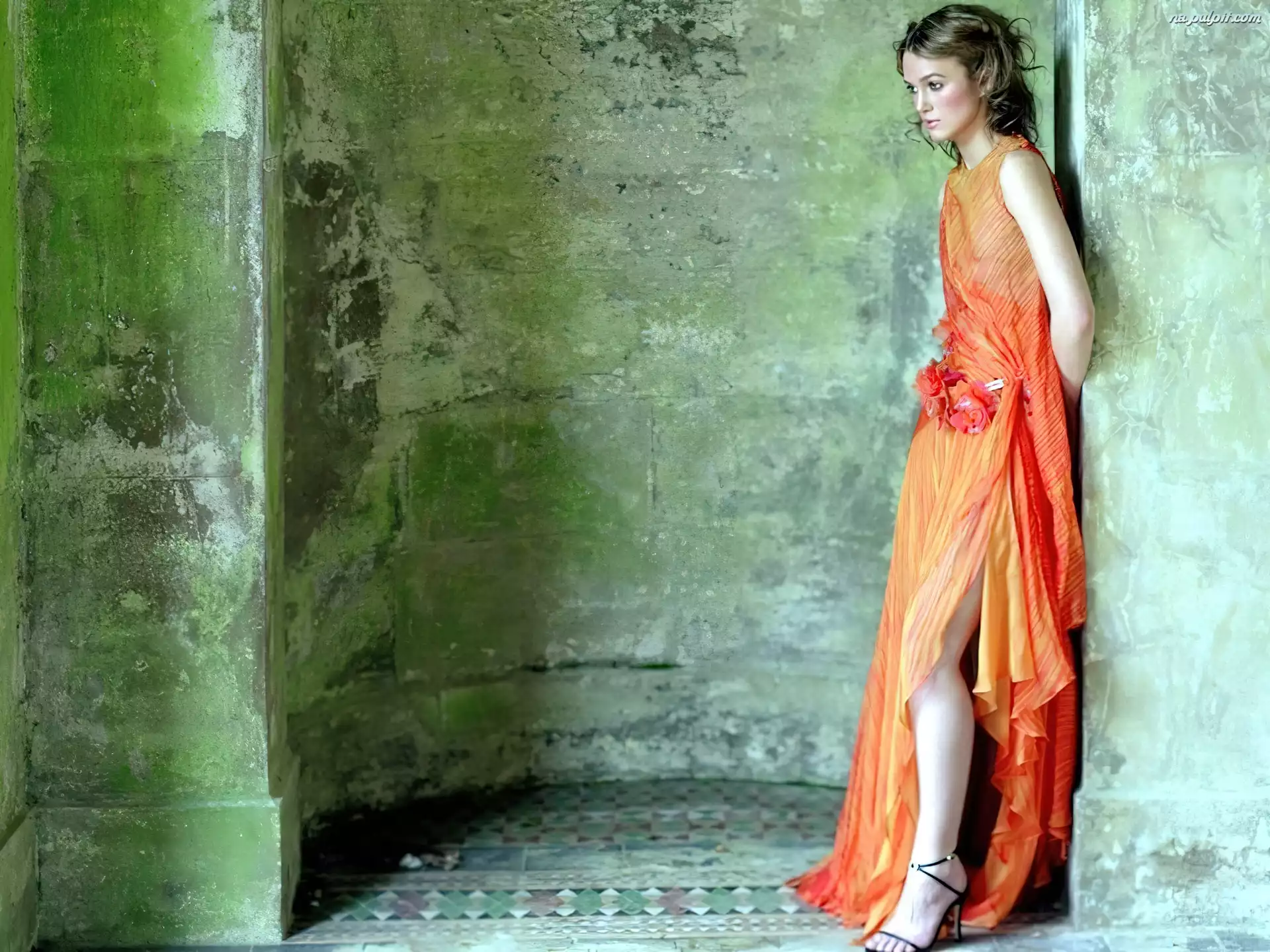 sukienka, Keira Knightley, Pomarańczowa Na Pulpit
