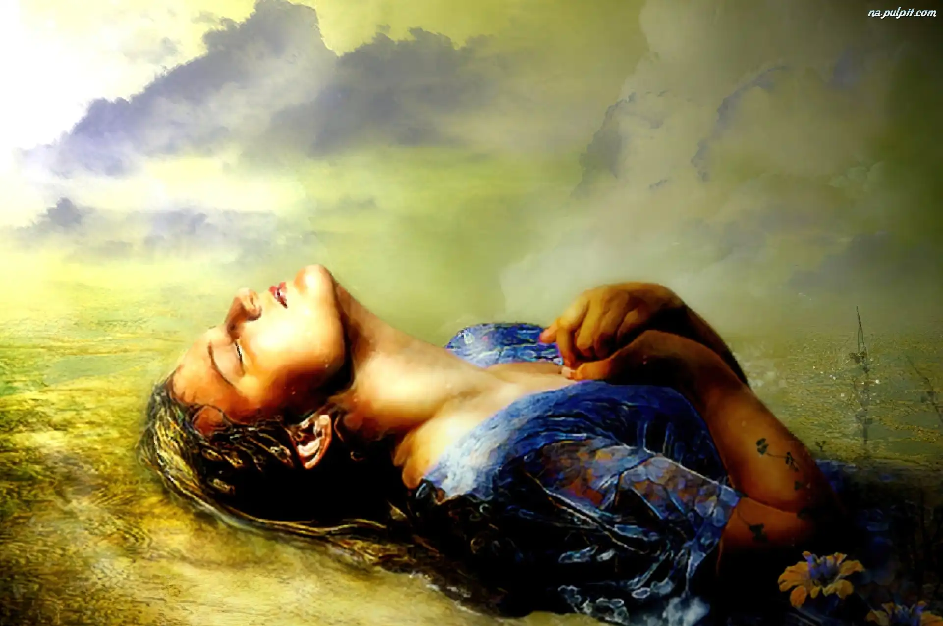 Sukienka, Blondynka, Kobieta, Niebieska Na Pulpit