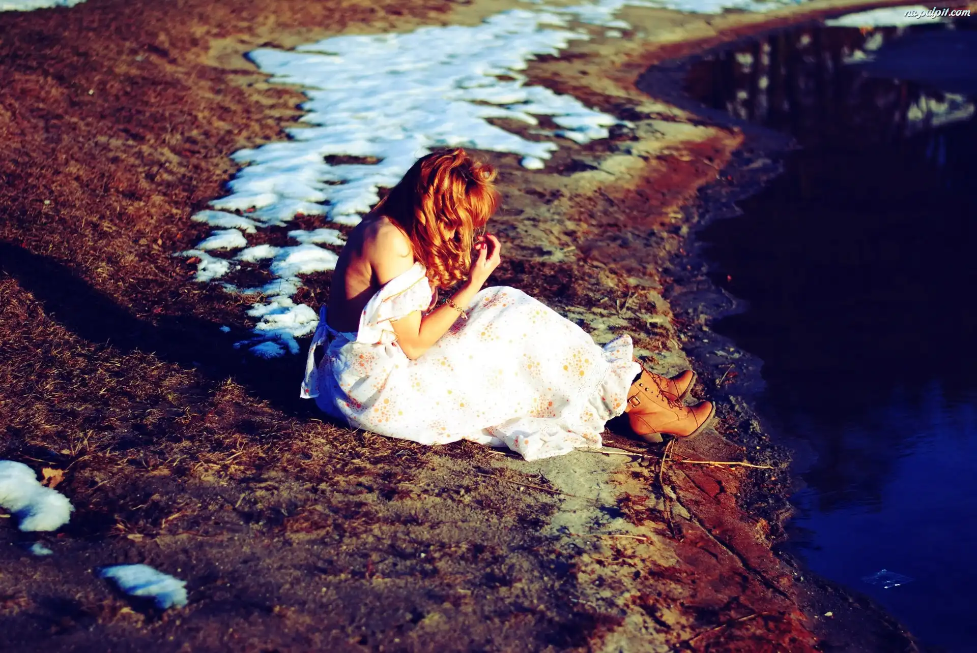 Sukienka, Kręcone, Kobieta, Włosy Na Pulpit