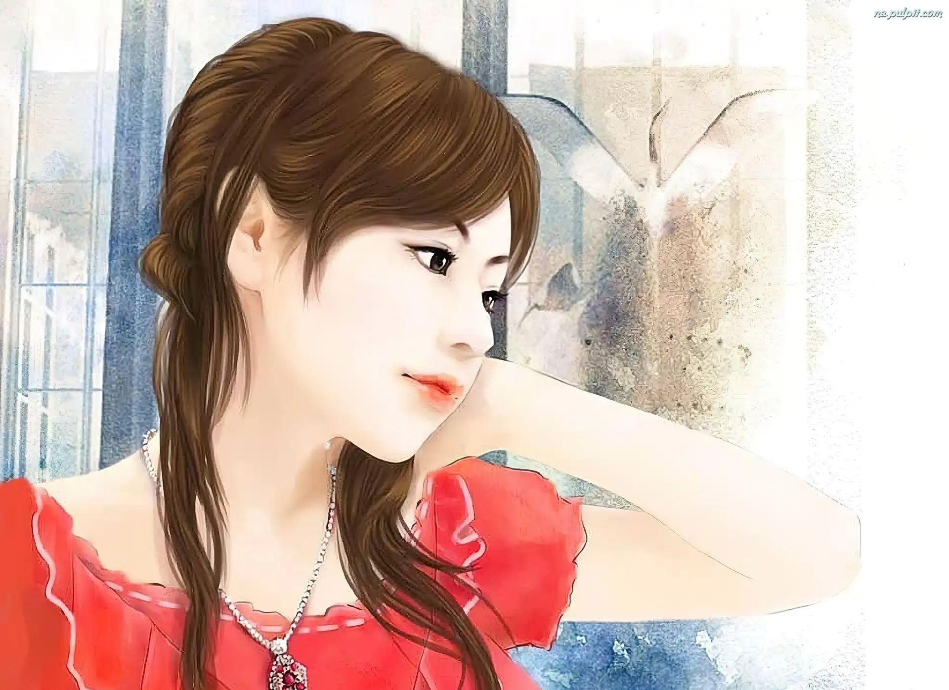 Sukienka, Kobieta, Młoda, Czerwona Na Pulpit