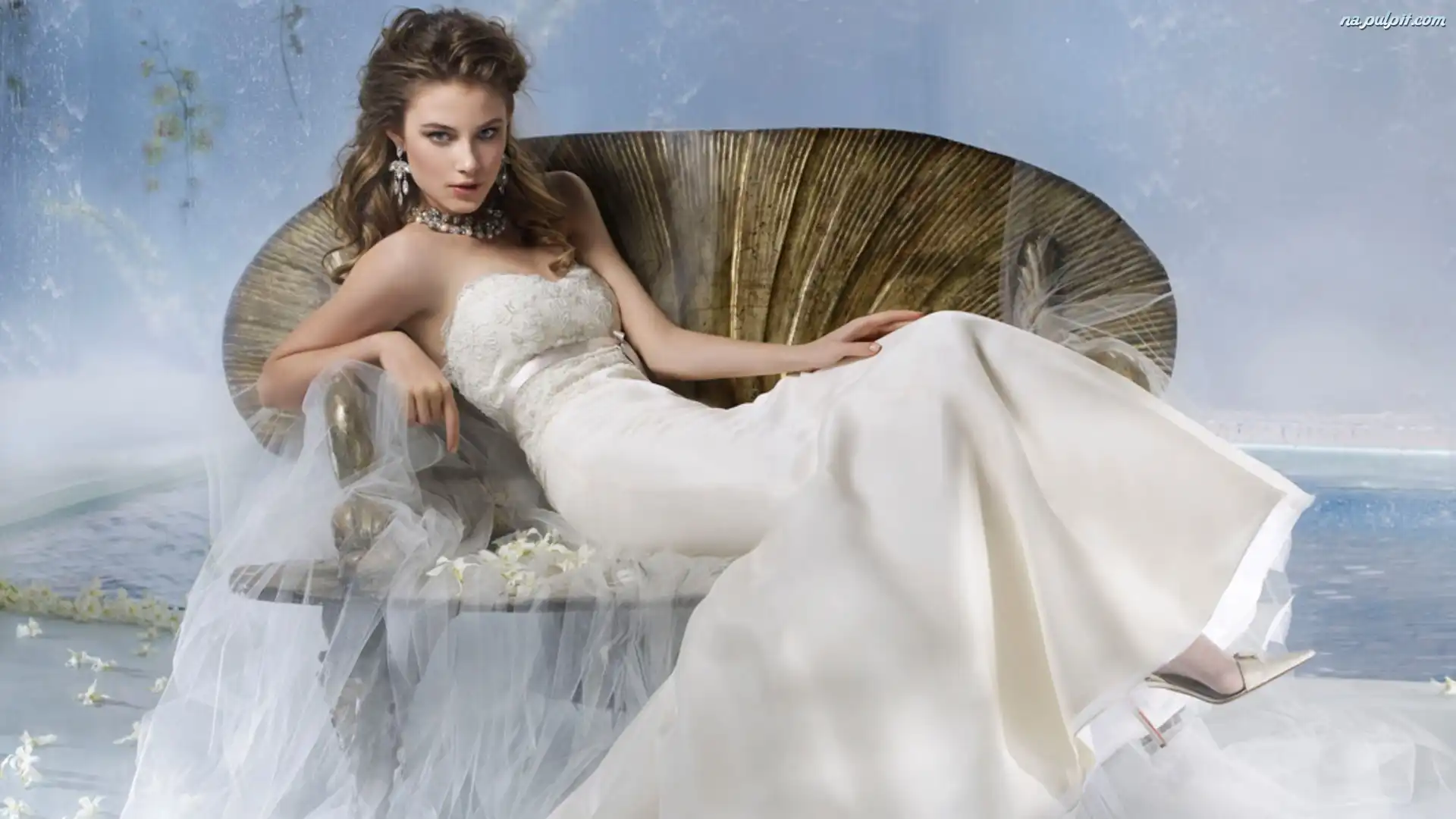 Suknia, Ławka, Kobieta, Biała Na Pulpit